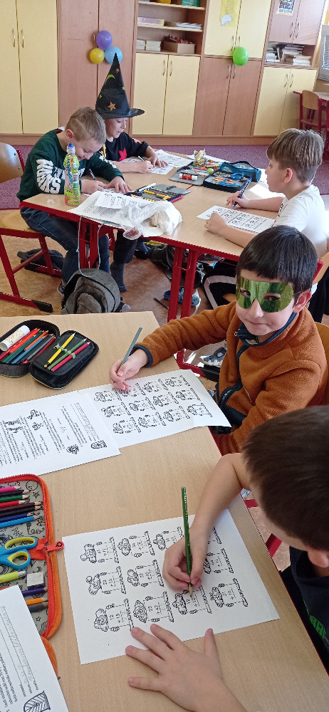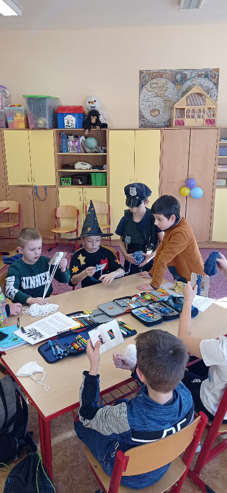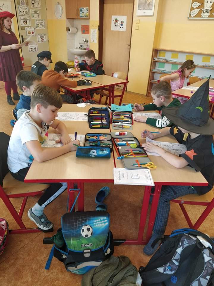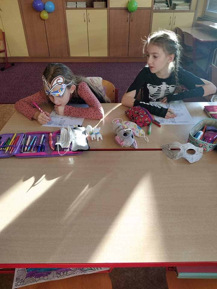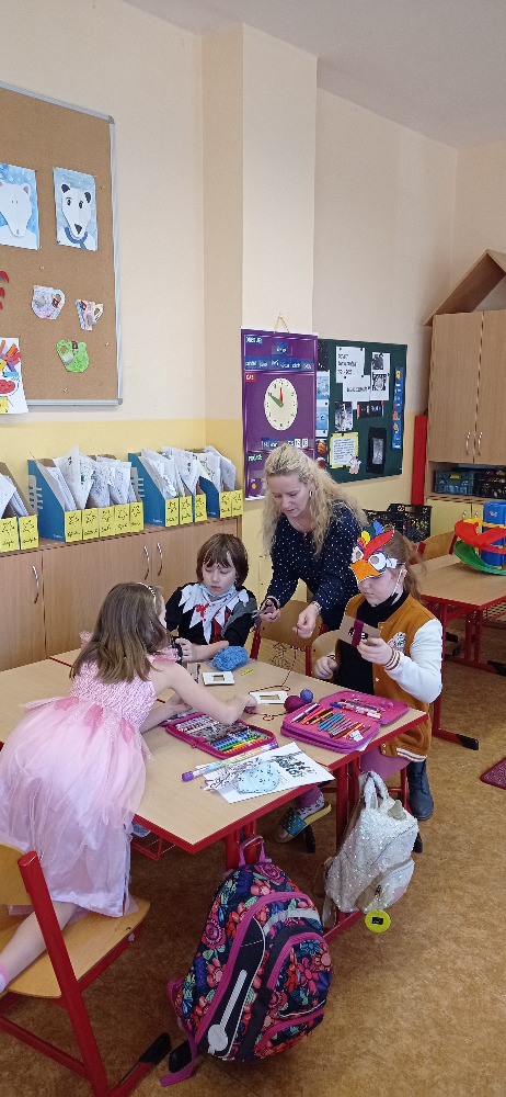 Žáci plnili různé úkoly z ČJL – doplňovali y, ý, i, í a luštili tajenky. V hodině matematiky procvičovali sčítání pod sebou a řešili masopustní slovní úlohy. Na závěr si každý vytvořil svého klauna, ke kterému bylo zapotřebí naučit se vyrábět bambuli.