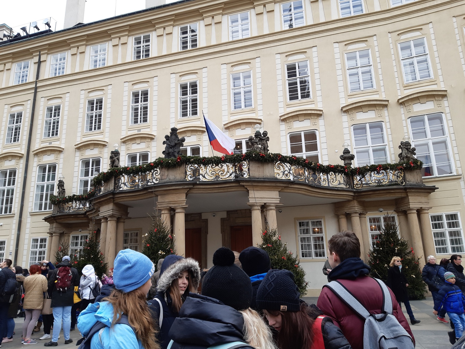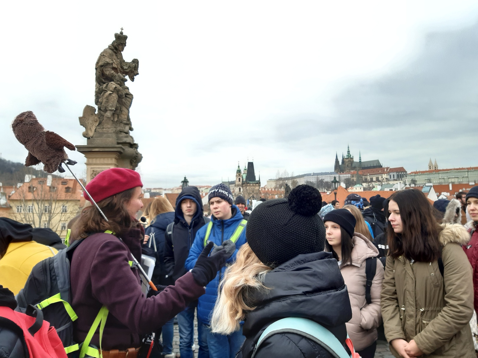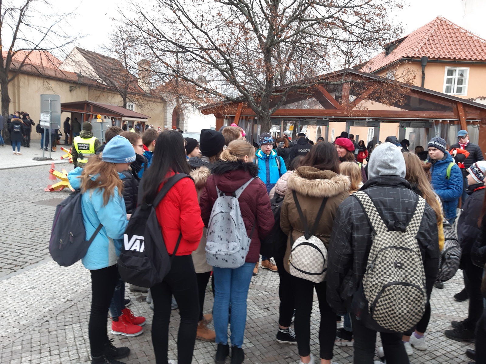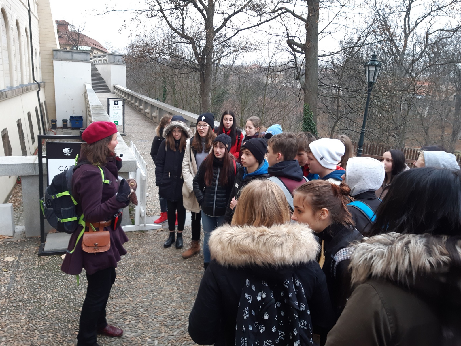 V pondělí, 2. prosince 2019, se žáci 8. AC a 9. A vypravili do Prahy na vycházku vedenou v anglickém jazyce. Absolvovali jsme 2,5 hodinový program a seznámili se s nejdůležitějšími pražskými památkami, pověstmi i historií. Začátek procházky byl na Hradčanech. Prohlédli jsme si Pražský hrad, navštívili Katedrálu sv. Víta, sešli jsme Nerudovou ulicí na Malou Stranu a ke Karlovu mostu. Dále jsme na Starém Městě prošli Klementinem na Staroměstské náměstí a vycházku jsme zakončili na Václavském náměstí. Celou cestu jsme poslouchali poutavé povídání naší průvodkyně a snažili jsme se odpovídat na její otázky. Za správné odpovědi jsme dostali pražské čokoládové groše.