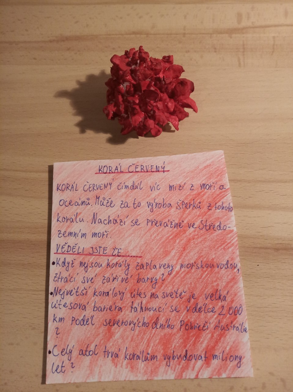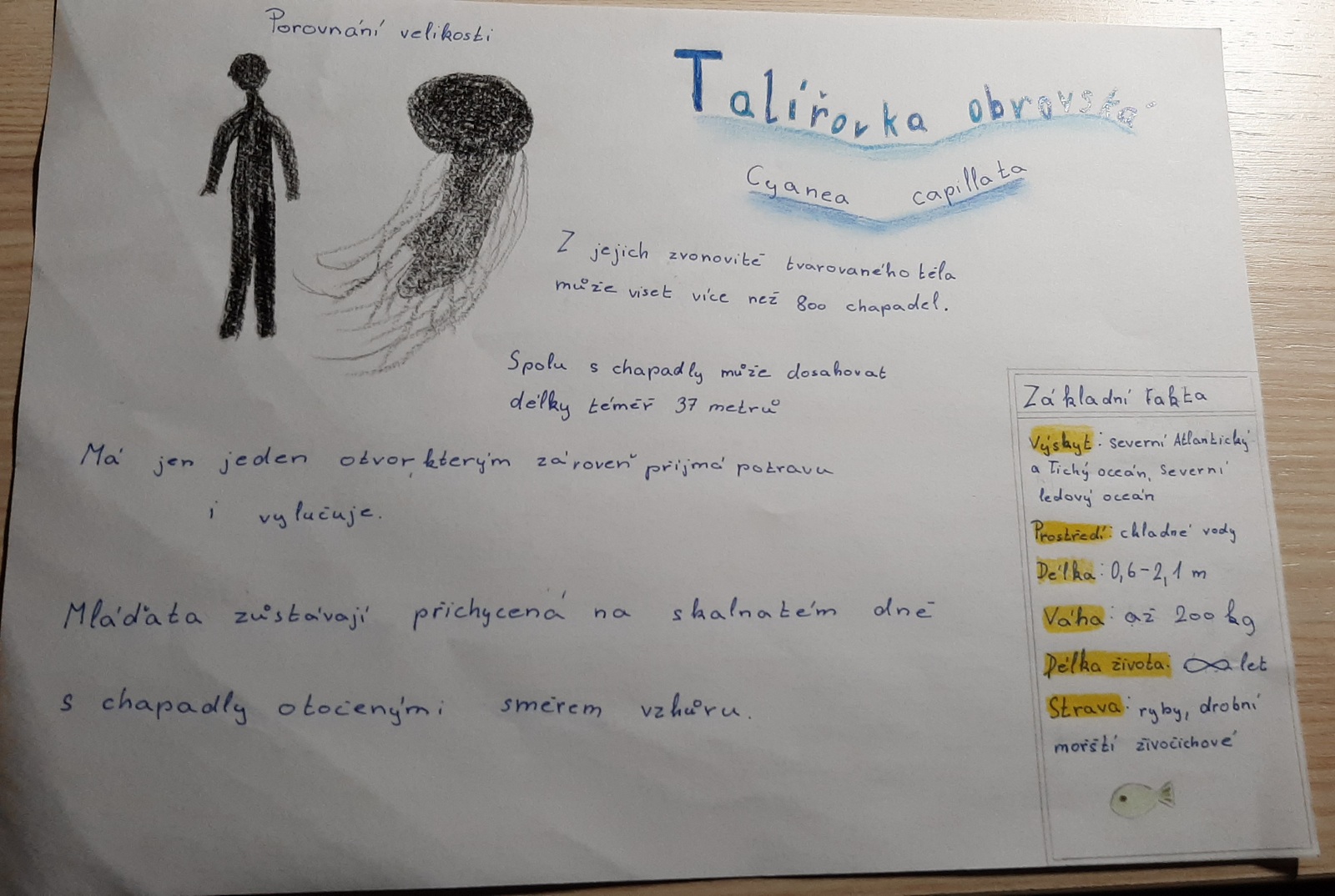 V druhé polovině ledna zpracovávali žáci 6. A v rámci přírodopisu projekt zaměřený na žahavce, díky kterému se dozvěděli mnoho nových a zajímavých informací o těchto mořských organismech, a to i nad rámec výuky. Žáci si sami na základě svých možností a zájmů zvolili, jak téma uchopí. Někteří vytvářeli 3D modely žahavců, jiní malovali nebo tvořili výukové plakáty.