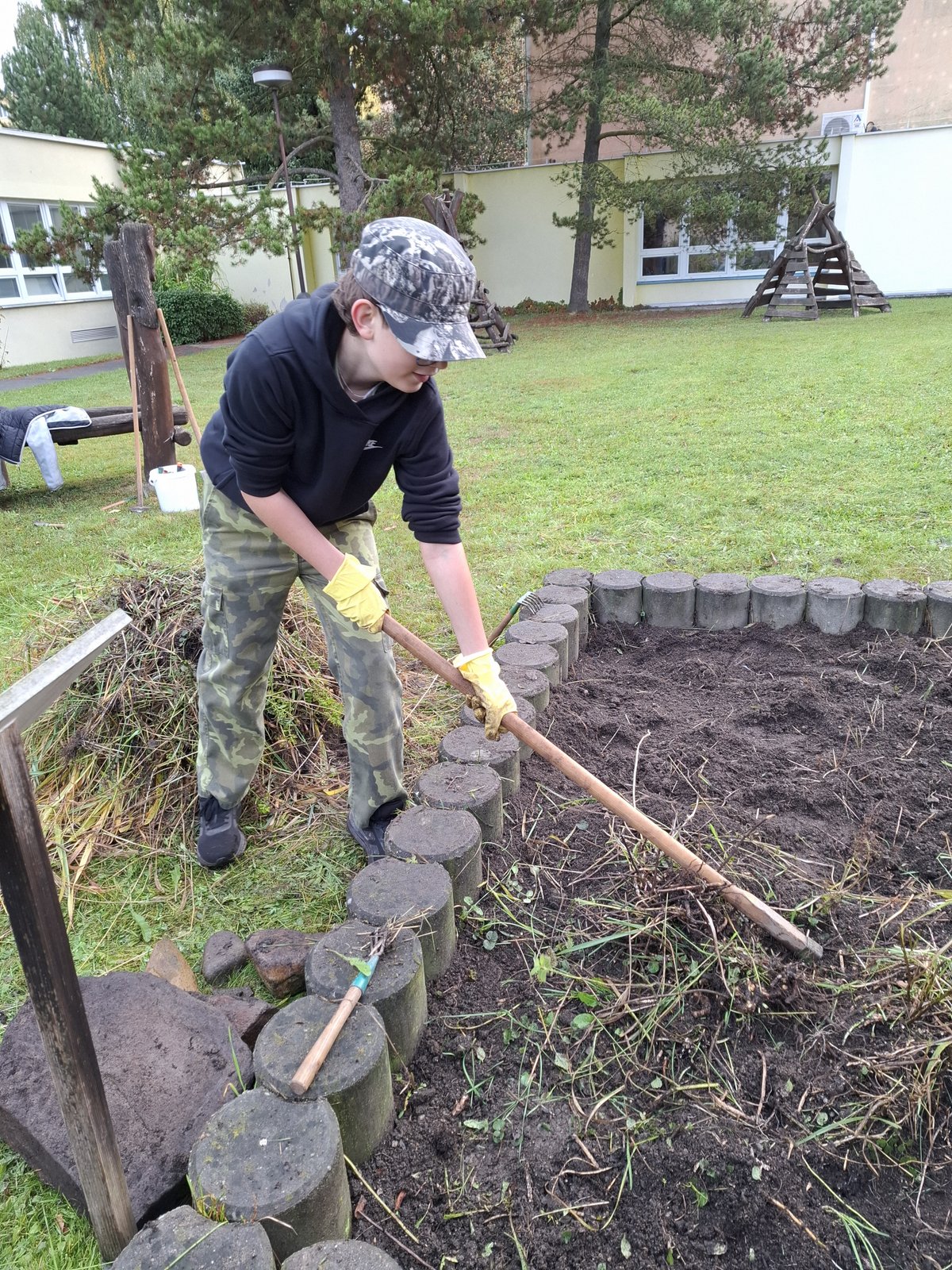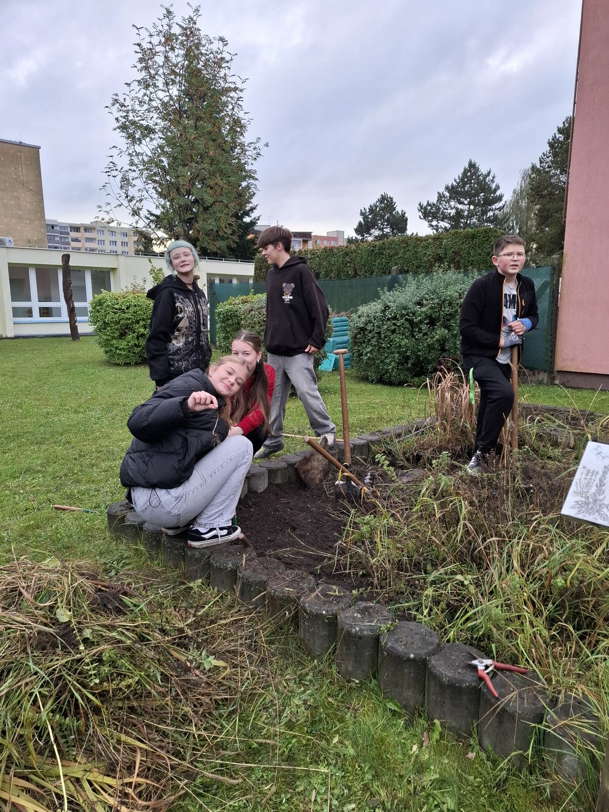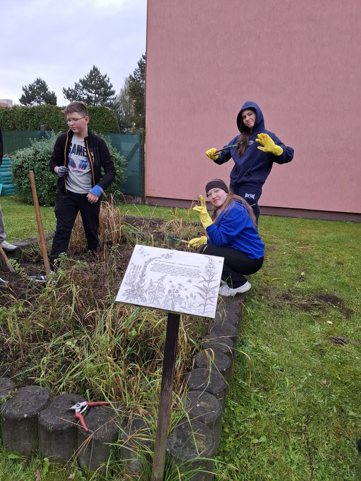 Na začátku října jsme se vydali pomoct paním učitelkám do MŠ Františka Ondříčka a znovu zvelebit jejich bylinkový záhonek. Moc děkujeme i žákům z 2. A a jejich paní třídní učitelce Pavle Václavíkové za velkou výpomoc. Na záhonku, který zpočátku vypadal jako malý prales, to teď krásně vonní nejrůznějšími léčivými květinami. Práce to byla napříč generacemi, pomáhaly děti z MŠ, druháčci i ekotýmáci a paní učitelky. Moc jsme si i přes nepříznivé počasí dopoledne užili.
