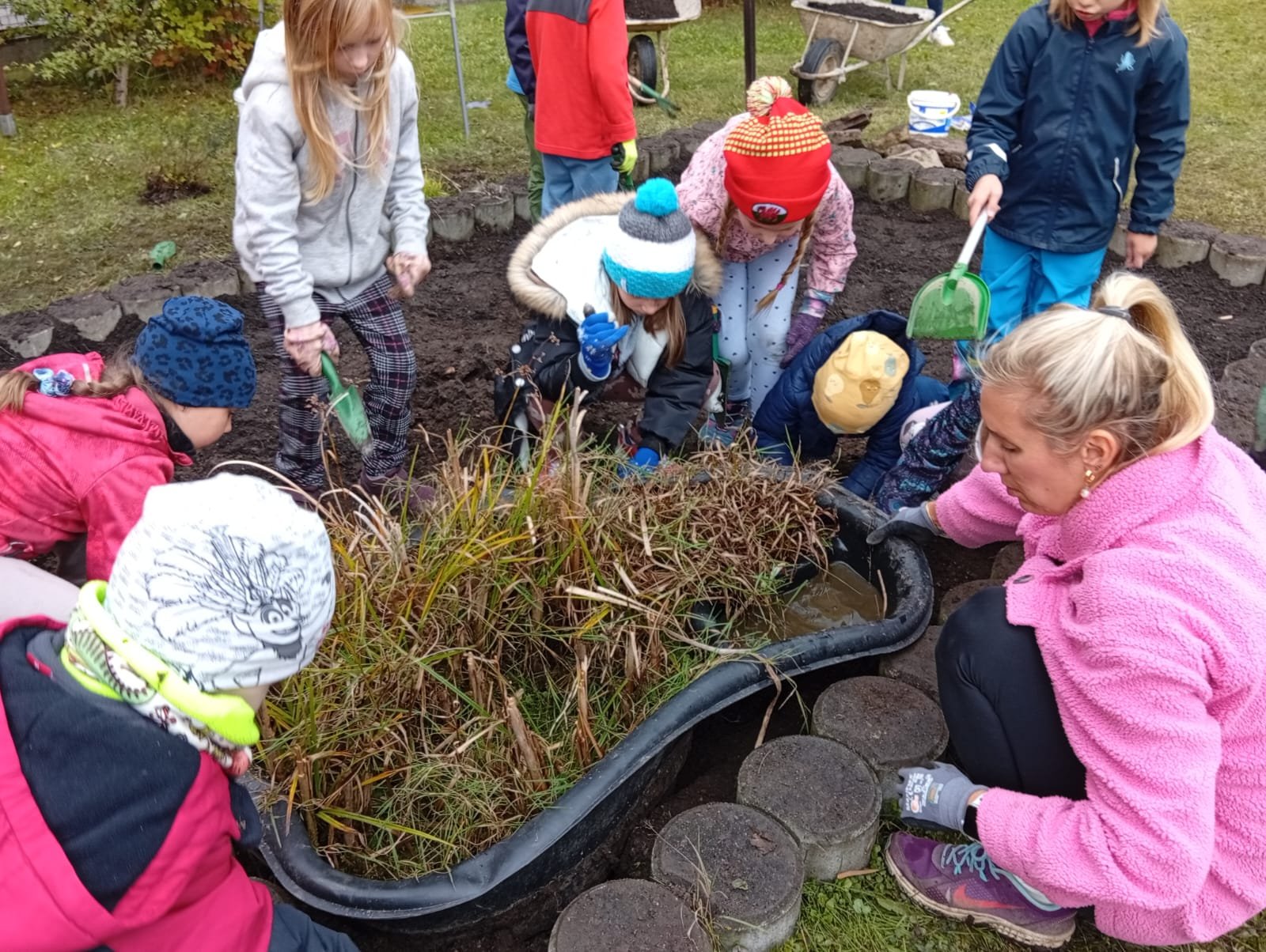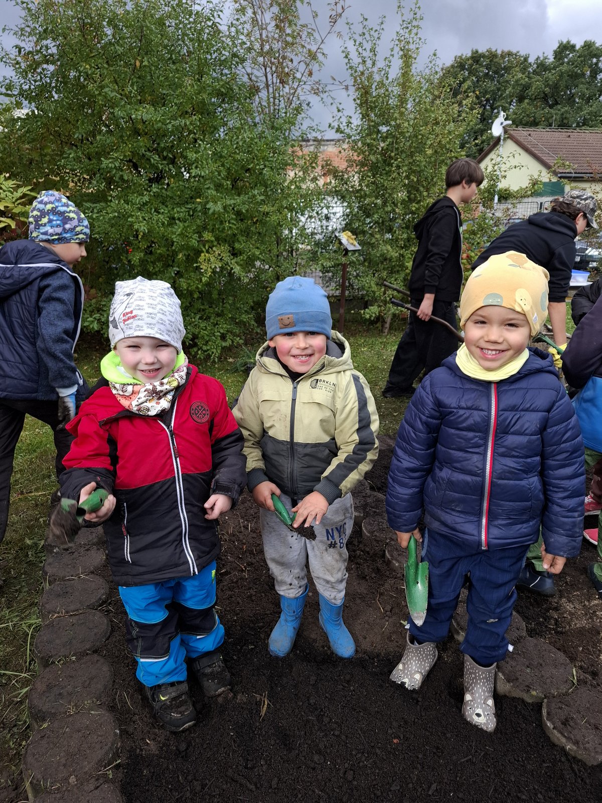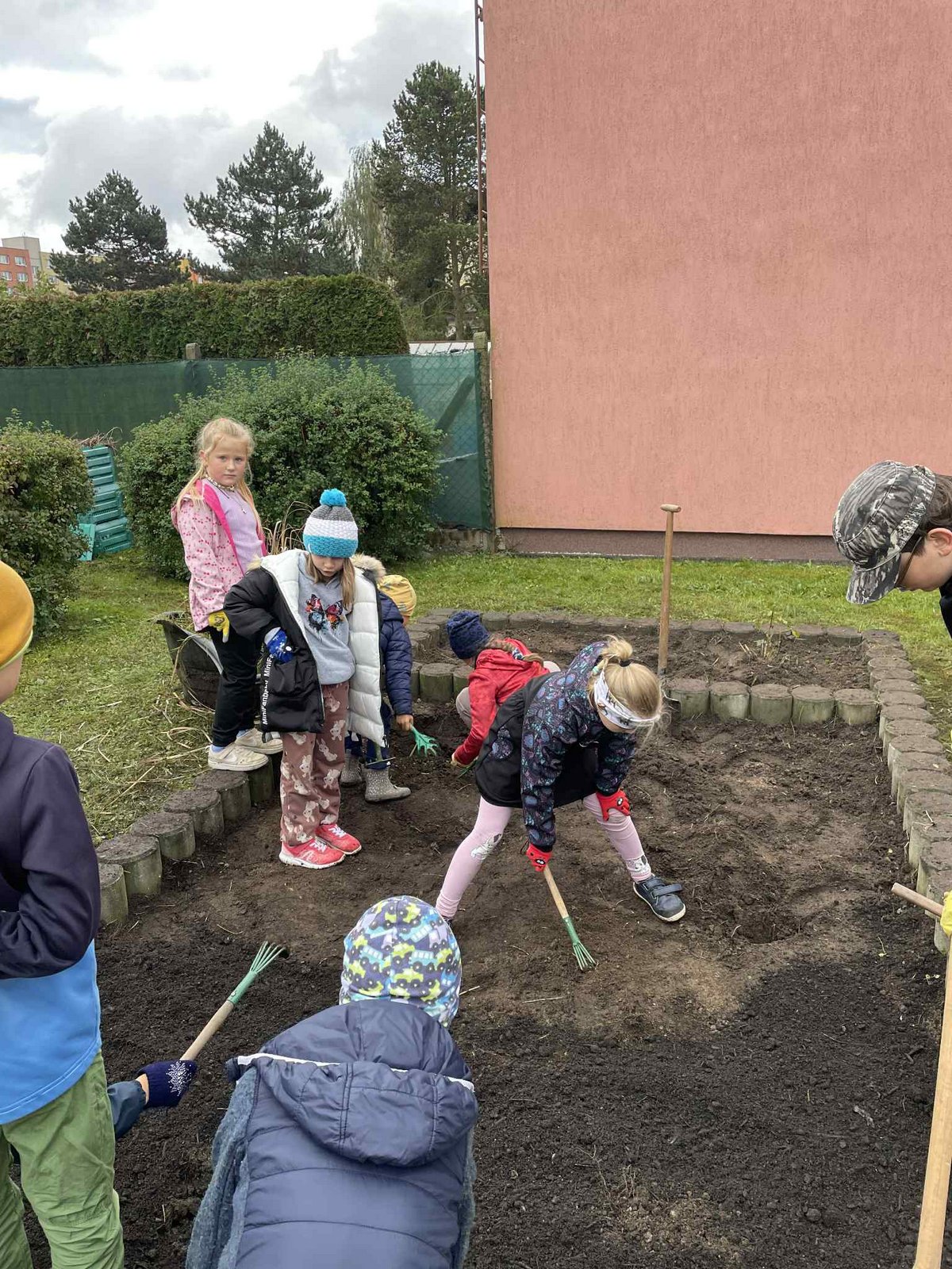 Na začátku října jsme se vydali pomoct paním učitelkám do MŠ Františka Ondříčka a znovu zvelebit jejich bylinkový záhonek. Moc děkujeme i žákům z 2. A a jejich paní třídní učitelce Pavle Václavíkové za velkou výpomoc. Na záhonku, který zpočátku vypadal jako malý prales, to teď krásně vonní nejrůznějšími léčivými květinami. Práce to byla napříč generacemi, pomáhaly děti z MŠ, druháčci i ekotýmáci a paní učitelky. Moc jsme si i přes nepříznivé počasí dopoledne užili.