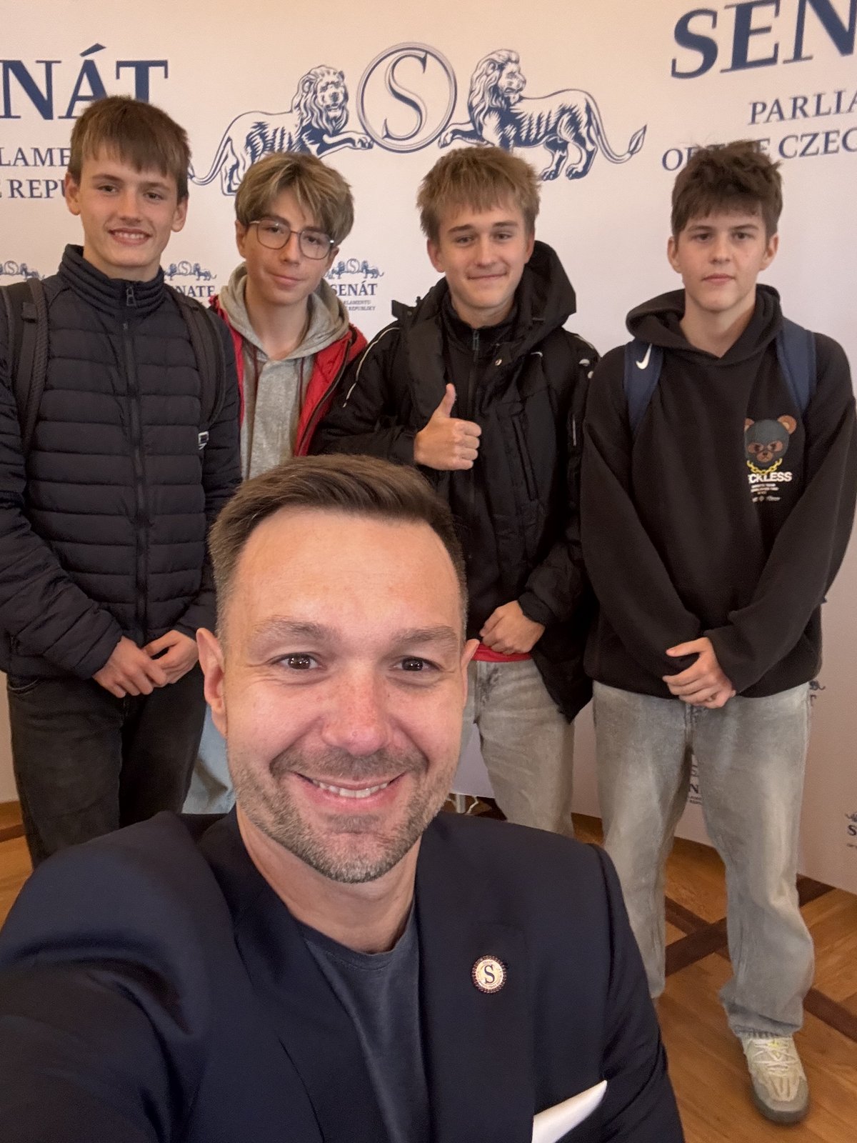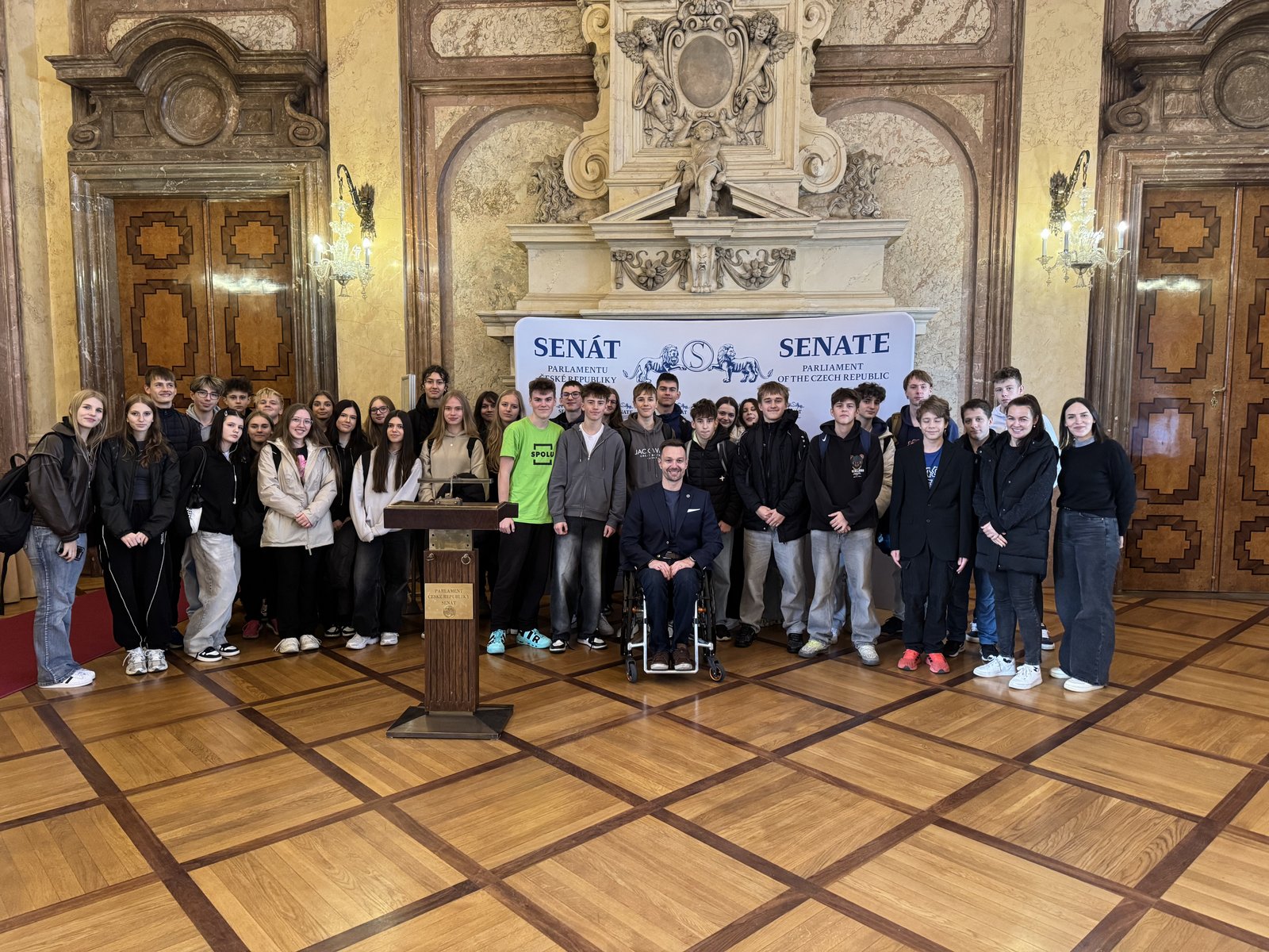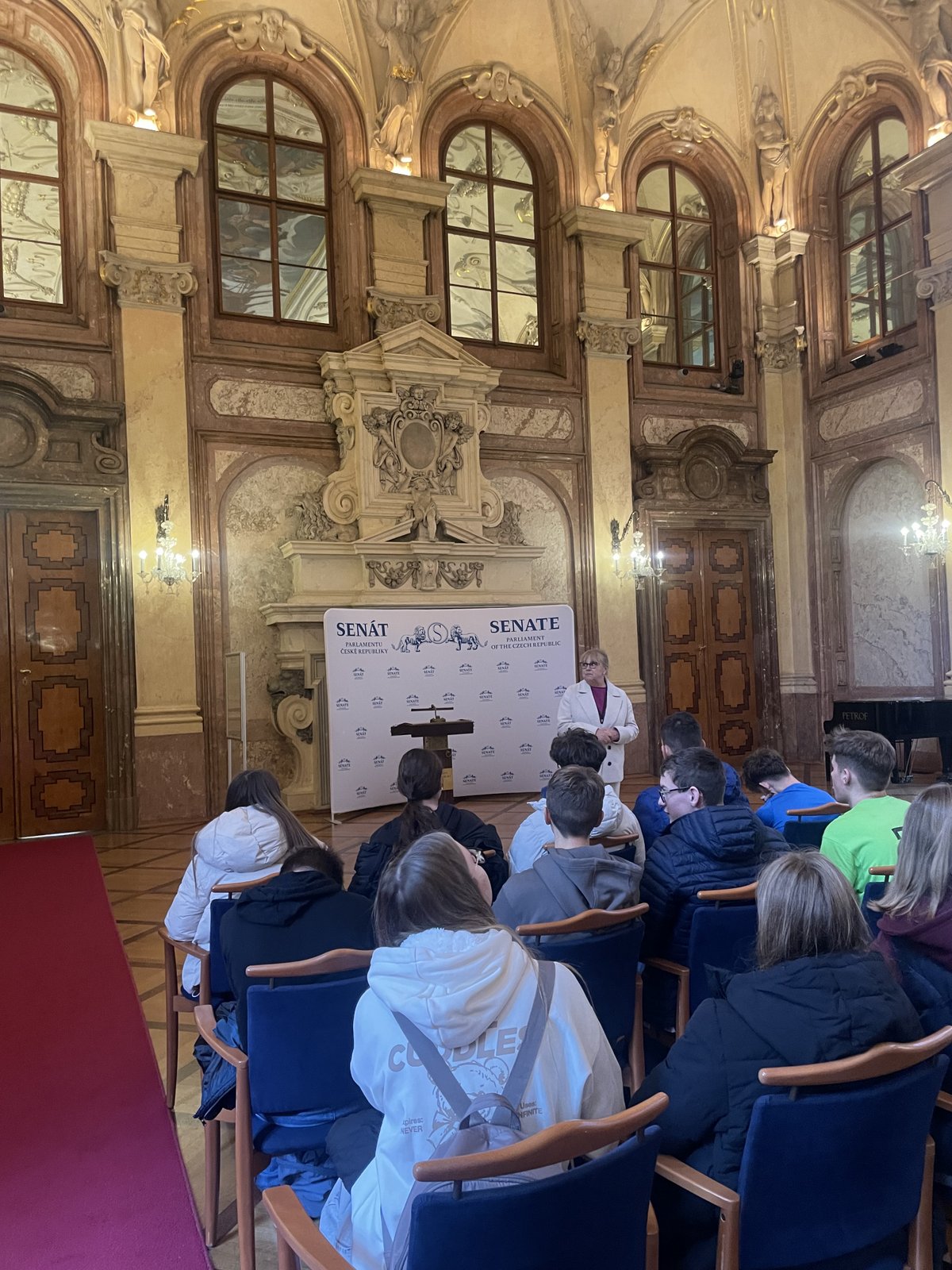 Žáci 9. tříd vyrazili na exkurzi do Senát Parlamentu ČR – místo, kde se rozhoduje o důležitých věcech, ale i tam občas zazní smích. Prošli jsme historické sály, nakoukli do zákulisí a zjistili, že i senátoři mají normální židle, a ne zlaté trůny, jak si někteří představovali. Následně proběhla debata s panem senátorem Zbyňkem Sýkorou. Žáci kladli zajímavé otázky a některé i velmi odvážné. Pan senátor odpovídal trpělivě a s úsměvem.