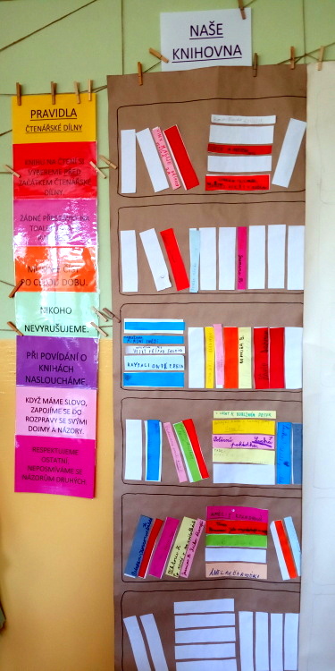 V tomto školním roce se „otevřely“ pro žáky 2. A a 2. B čtenářské dílny. Čtenářská dílna je jednou z metod rozvíjející čtenářskou gramotnost. Jedenkrát týdně při hodině českého jazyka si žáci ve škole čtou očima svoji rozečtenou zábavnou knihu. Za stanovených podmínek se vlastně učí – neučí. O své četbě si vedou zápis ve čtenářském deníku. Po přečtení knihy si vyrobí jakousi papírovou podobu knihy a uloží si ji do papírové třídní knihovny. Na začátku září byla knihovna prázdná, teď už se postupně zaplňuje.