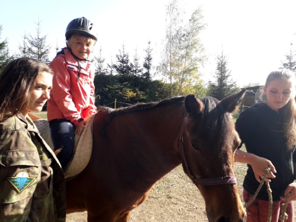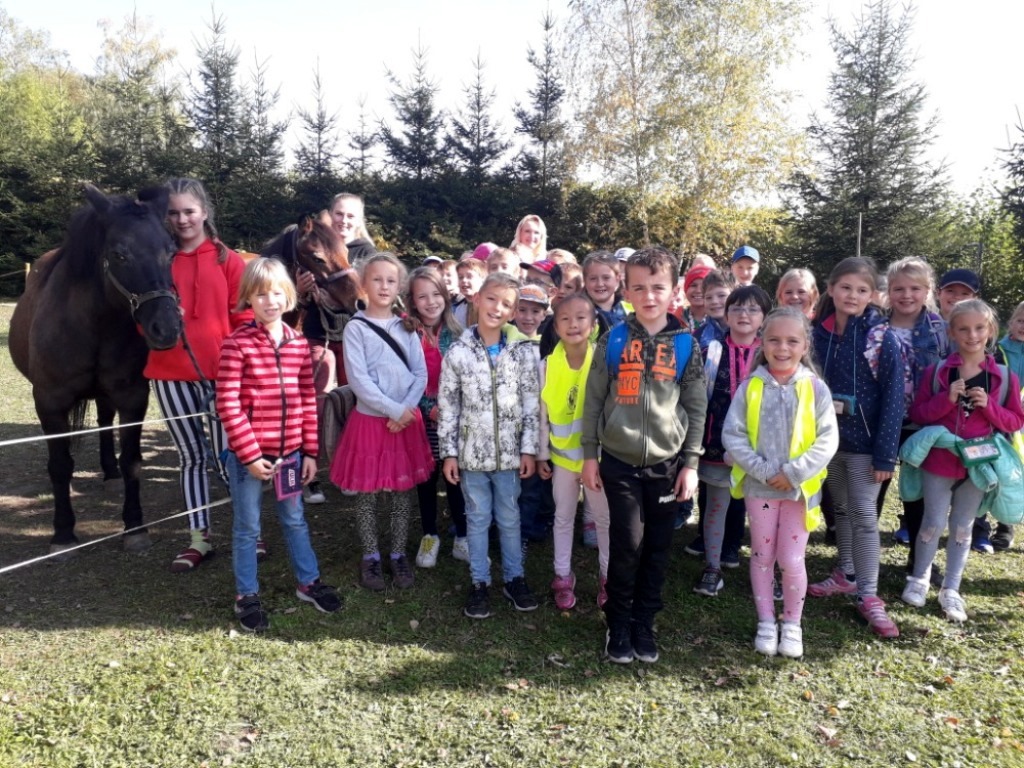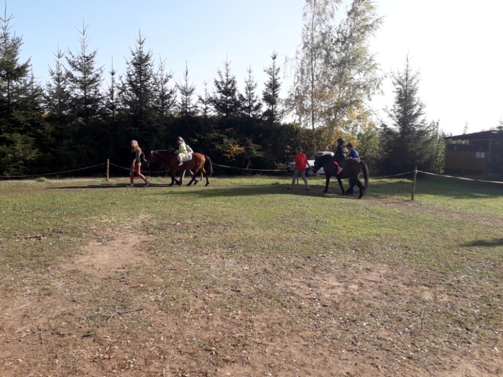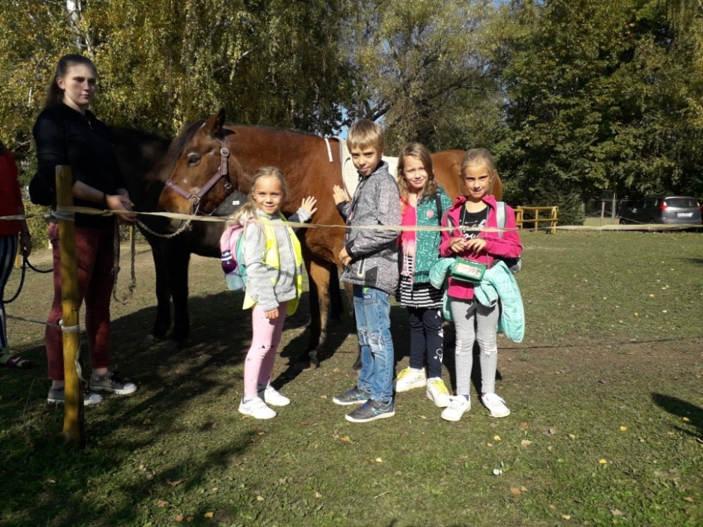 V rámci projektu družiny ,,Máme rádi zvířata“ jsme v úterý 15. 10. s dětmi navštívili Den otevřených dveří na SOŠ veterinární, mechanizační a zahradnické v Českých Budějovicích. Během odpoledne jsme si prohlédli celý areál školy, kterým nás provedli studenti. Děti viděly učebnu včelařství, ovocné a pěstitelské expozice, vystavenou techniku – kombajny, traktory. Navštívily také středisko praxe a ustájených zvířat. Vyzkoušely si jízdu na koních. Za pěkný zážitek děkujeme.