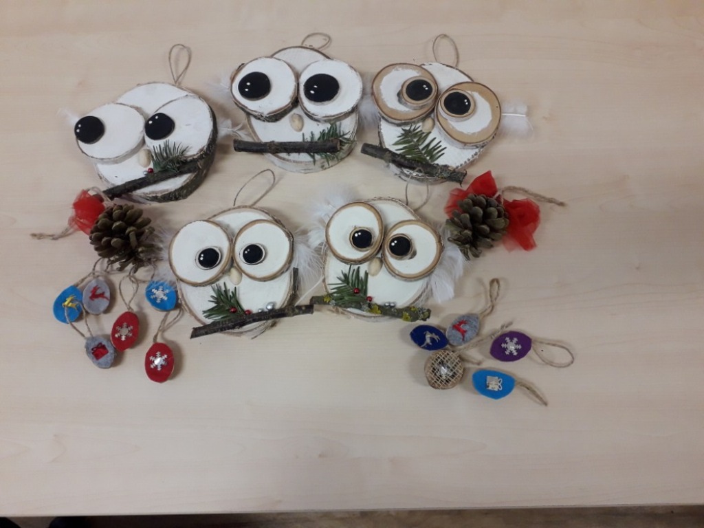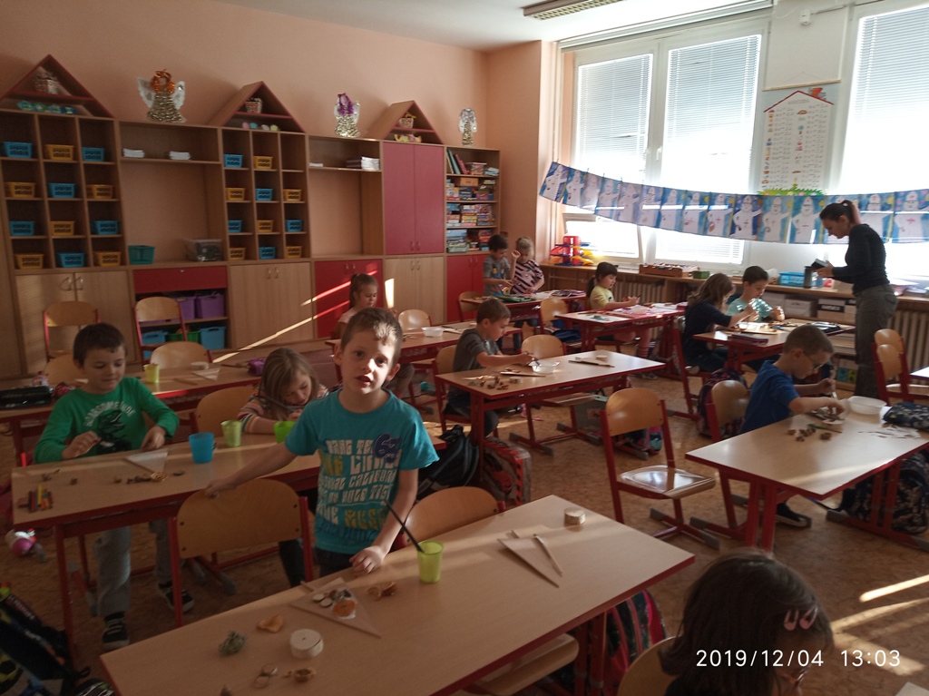 Koncem listopadu a začátkem prosince zavítala do školní družiny lektorka z výtvarného ateliéru Lvíček. Vytvářela s dětmi podzimní a vánoční dekorace – sovičky ze dřeva, andílka z papírových košíčků a vánoční stromeček z přírodního materiálu. Práce žáky bavila, rozvíjela jejich tvořivost i fantazii. Výrobky se moc povedly. Vánoční dílny navodily sváteční náladu. Těšíme se na další spolupráci s tímto ateliérem.