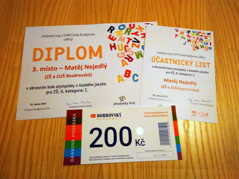 Ve středu 22. ledna 2020 proběhlo okresní kolo olympiády z českého jazyka. Soutěže se zúčastnilo 58 žáků a žákyň. Gabriela Würstlová z naší 9.C se umístila na velmi pěkném 20. místě. Matěj Nejedlý z 8.C se díky svým vědomostem probojoval až na místo třetí a postupuje do krajského kola. Oběma zúčastněným gratulujeme.