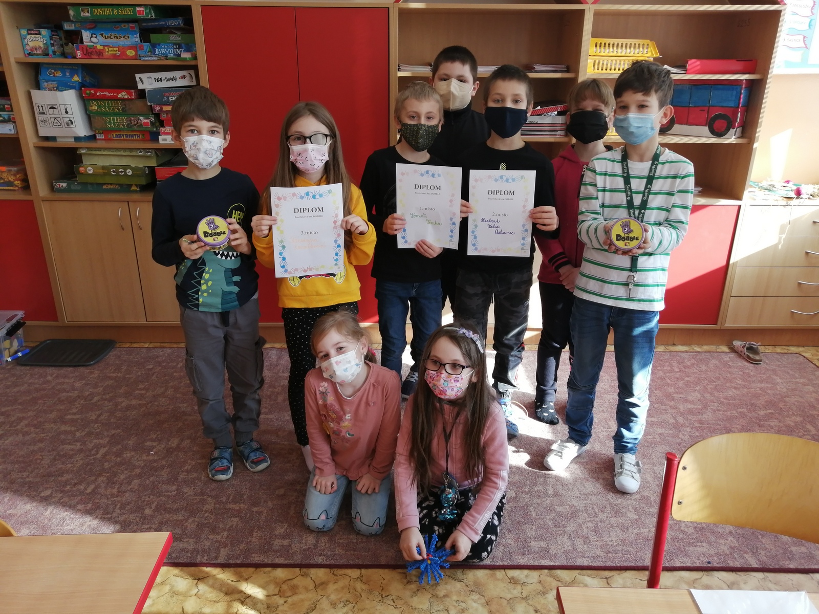 Na začátku února si každé oddělení uspořádalo svůj turnaj v postřehové hře Dobble. Hra je založena na rychlých reakcích a postřehu při hledání stejných symbolů. Soutěž děti bavila. Každé oddělení mělo svého vítěze, který dostal diplom a malou odměnu. Protože víme, že není důležité vyhrát, ale zúčastnit se, tak děti soutěžily hlavně pro radost.