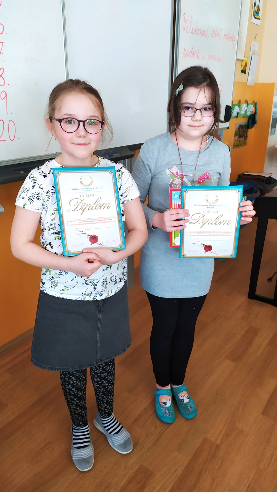 Kategorie mladších žáků (1. a 2. třída): 1. Laura Isabella Kamenská, 2. Markéta Zábranská, 3. Petříková Veronika.