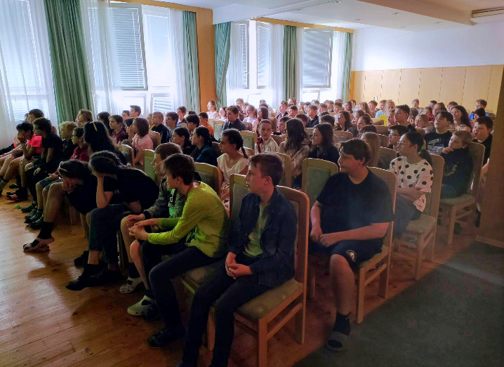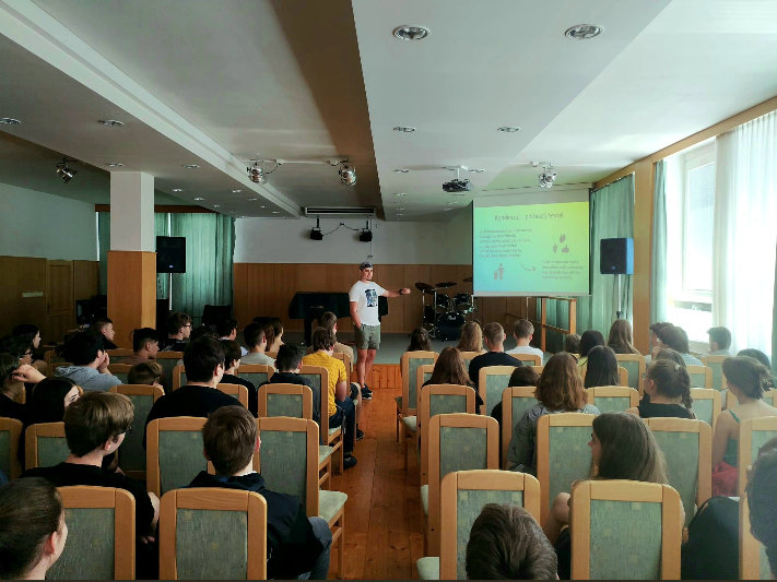 V polovině května jsme do naší školy pozvali Běžícího češtináře. Pro šestý, sedmý a devátý ročník si připravil popularizační přednášku