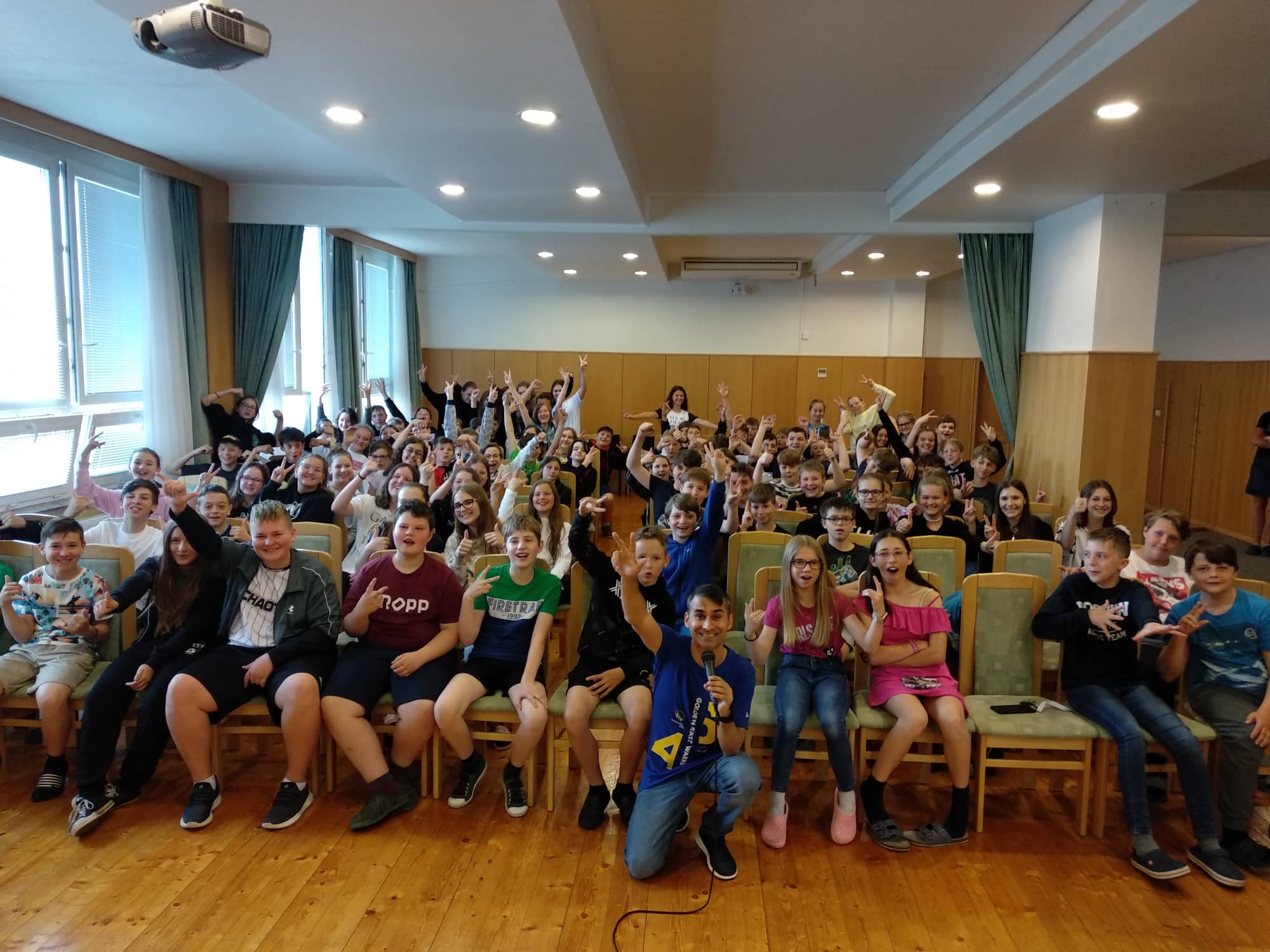 Ve dnech 17. a 18. 5. navštívil naši školu Radek Banga. Tento známý zpěvák stojící v čele kapely Gipsy.cz se přijel podělit v rámci primární prevence se svým životním příběhem. Žáci 6., 7., 8. i 9. tříd vyslechli jeho poutavé vyprávění doplněné i o několik písniček. Všichni (nejen žáci, ale i vyučující) byli s dvouhodinovým programem velice spokojeni. Pevně doufám, že si z programu odnesli i myšlenku, která ho celý propojuje - nic není v životě zadarmo, ale když chceš, tak to dokážeš! Ale musíš pro to něco udělat. A návod na život podle Radka Bangy? CHTÍT - VĚŘIT - KONAT.