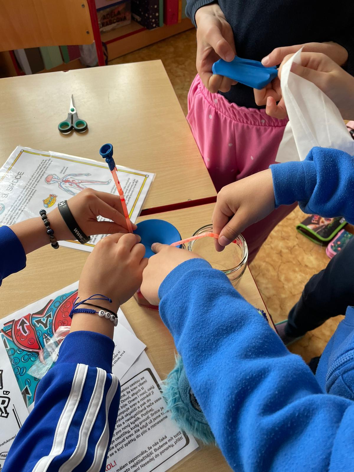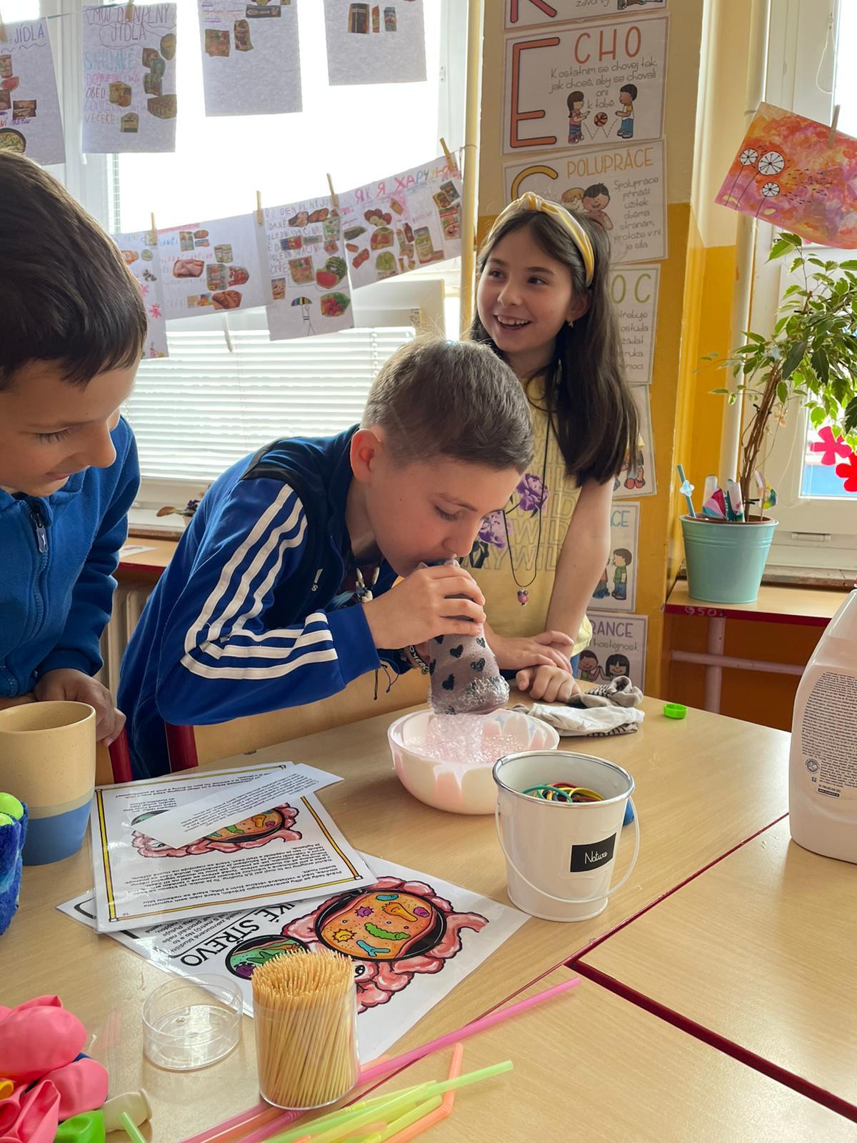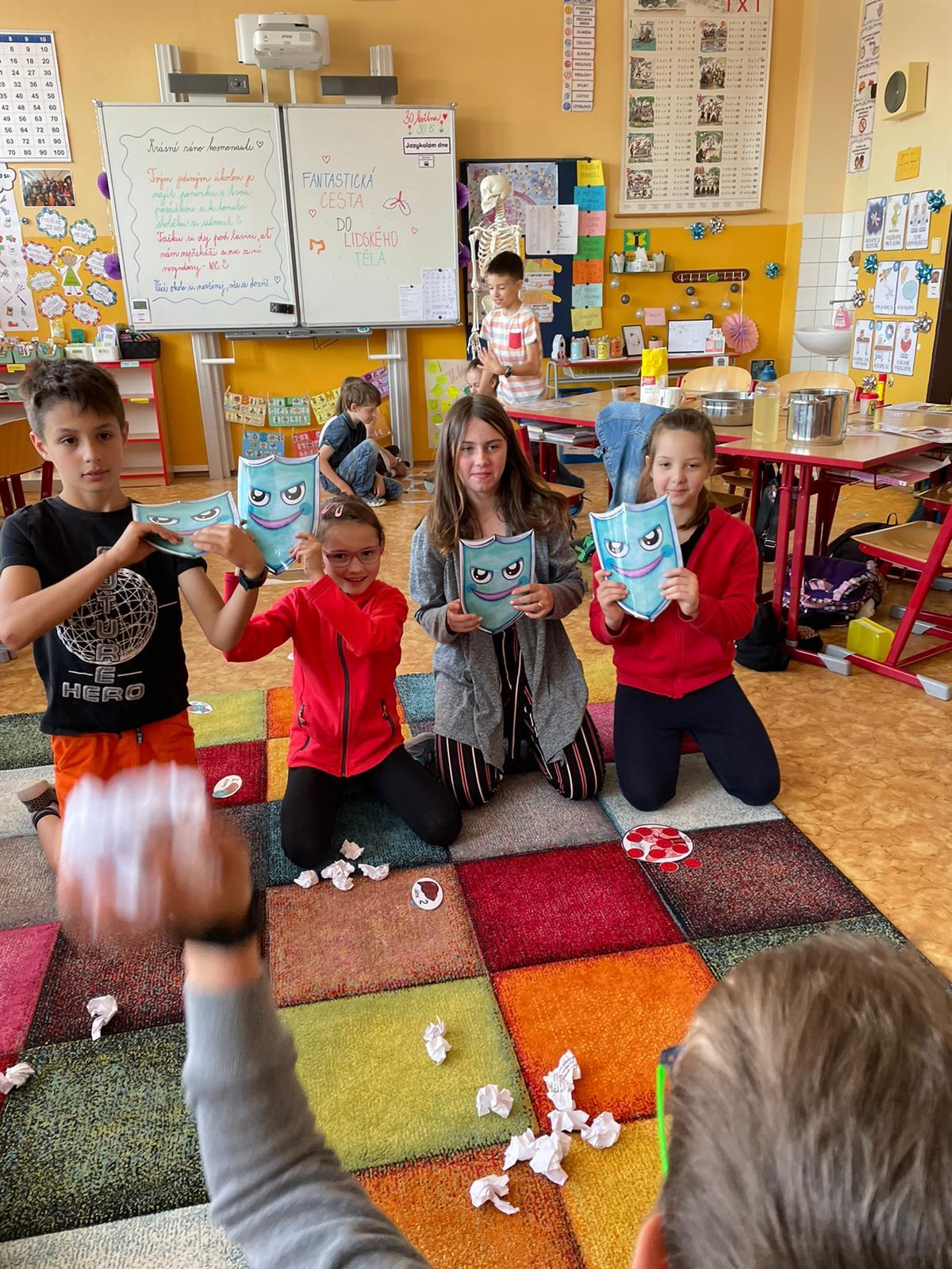 V pondělí 30. 5. se žáci 3.B po spolknutí zmenšovacích pilulek vydali na zábavnou a zároveň vzdělávací jízdu po orgánech lidského těla! Který orgán je nejteplejší? Který nejdelší? Kde je druhý mozek? Na tyto otázky a mnoho dalších žáci hledali odpovědi. Bojovali po boku bílých krvinek, vyčistili tenké střevo, pomáhali roznést kyslík do celého těla, pomocí jaterních buněk odrazili útok zákeřných virů. Vyrobili si svou stolici, svůj model plic, zkusili si, jak filtrují ledviny, jak pumpuje srdce a jak pracuje žaludek. Byla to parádní jízda!