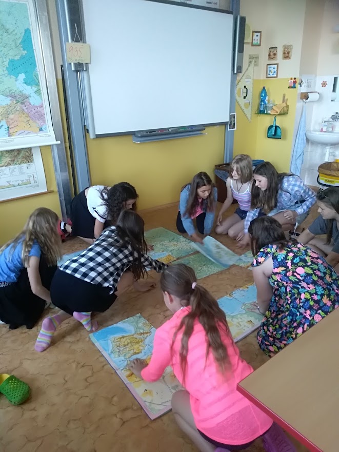 V první části programu, na malé zahřátí, si chlapci a děvčata složili velkou mapu Evropy a přiřazovali evropské vlajky do slepé mapy Evropy. A na další činnosti už nezbyl čas, protože se aktivity ujali členové pracovních skupin. Jejich úkolem bylo představit zajímavou a zábavnou formou jeden evropský stát.