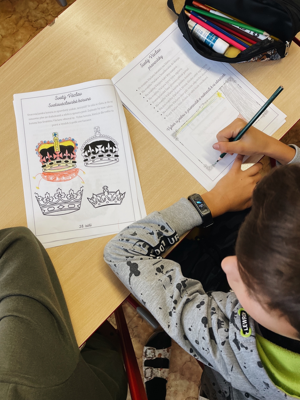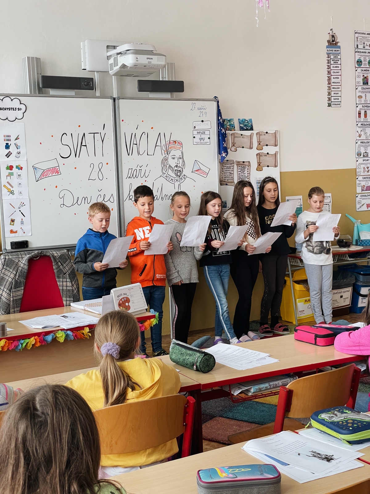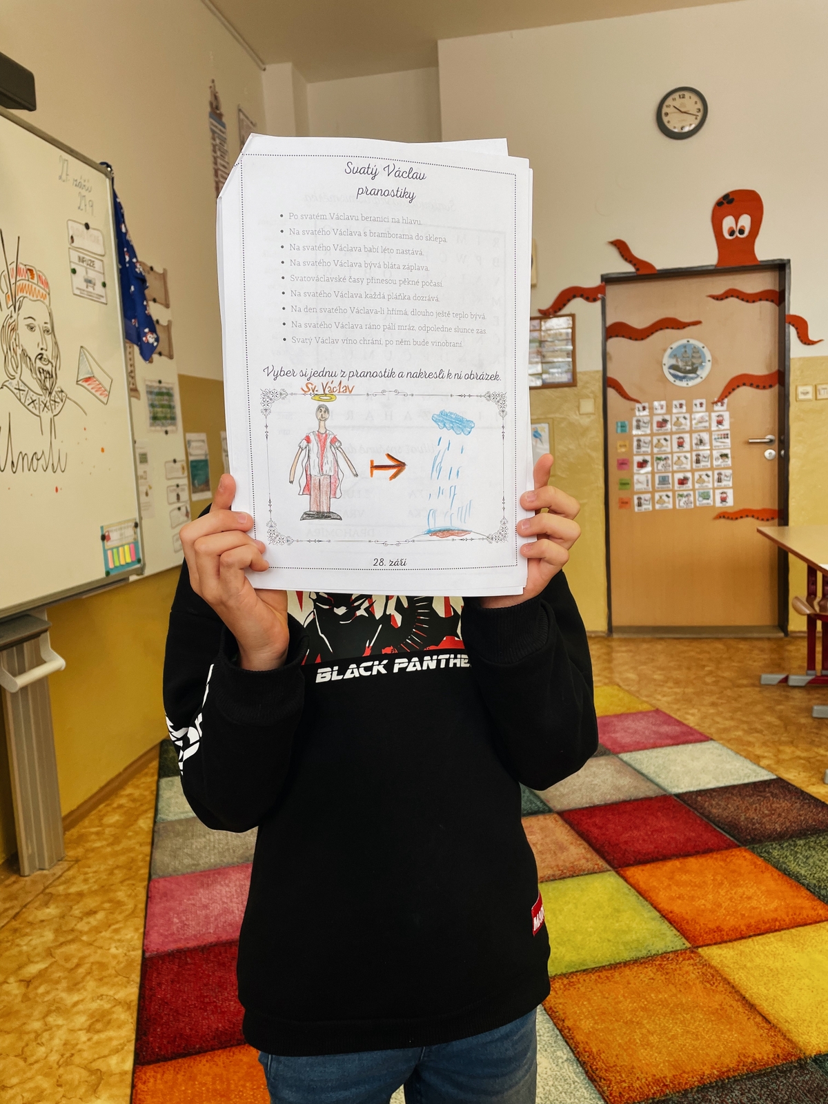 Kdo byl svatý Václav? Jakou měl rodinu? V jaké době žil? Co všechno za svého života vykonal? Kde spí blaničtí rytíři? Co se událo ve Staré Boleslavi? Na všechny tyto otázky hledali odpovědi žáci 4.B v rámci projektu “Svatý Václav” v úterý 27. září. Seznámili se s životem knížete Václava, dozvěděli se spoustu zajímavostí a pranostik, které se s tímto světcem pojí. Zopakovali jsme si i stání symboly, které ke svátečnímu dni patří, vyrobili si svatováclavskou korunu a těšili se na státní svátek, který nás čekal.