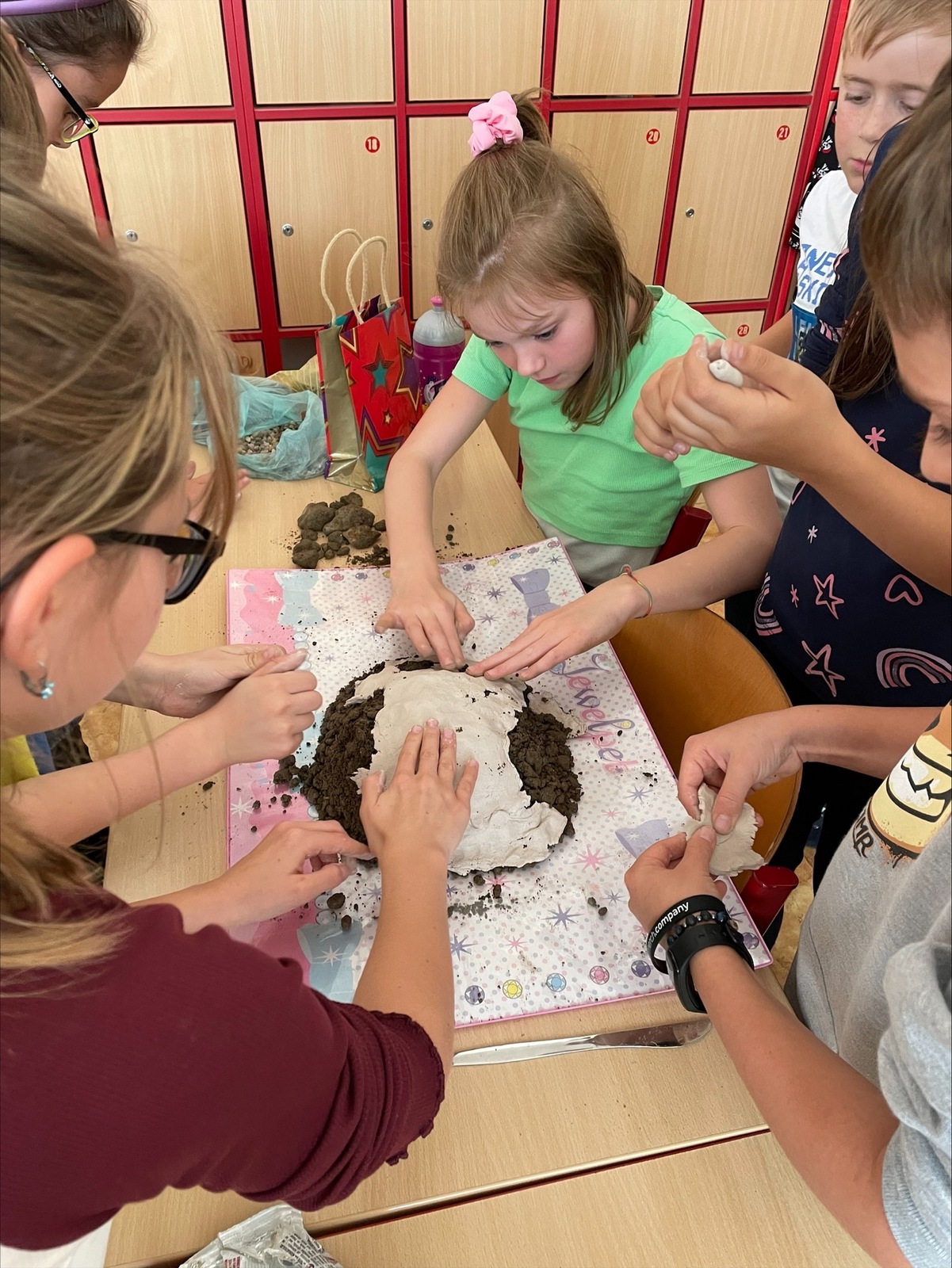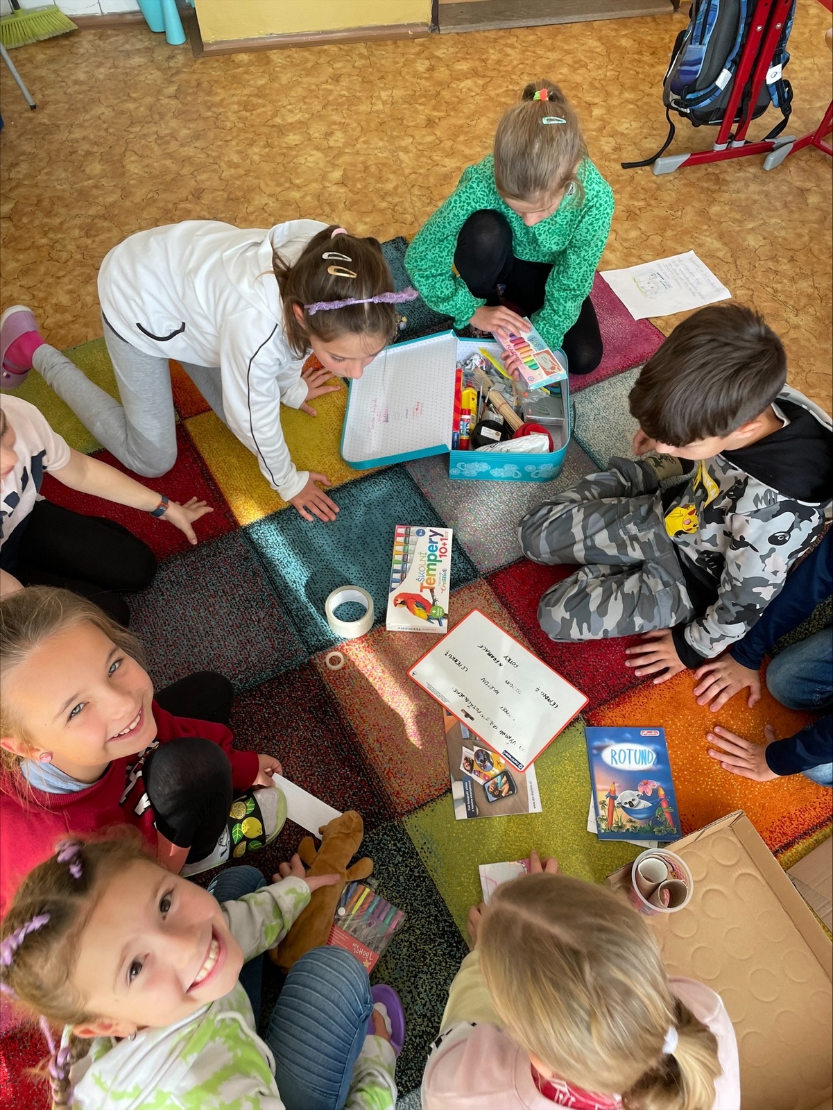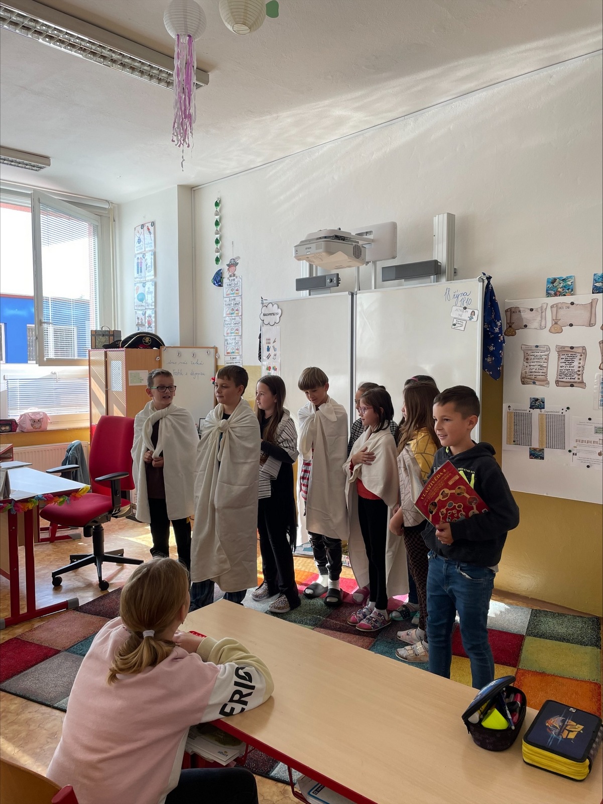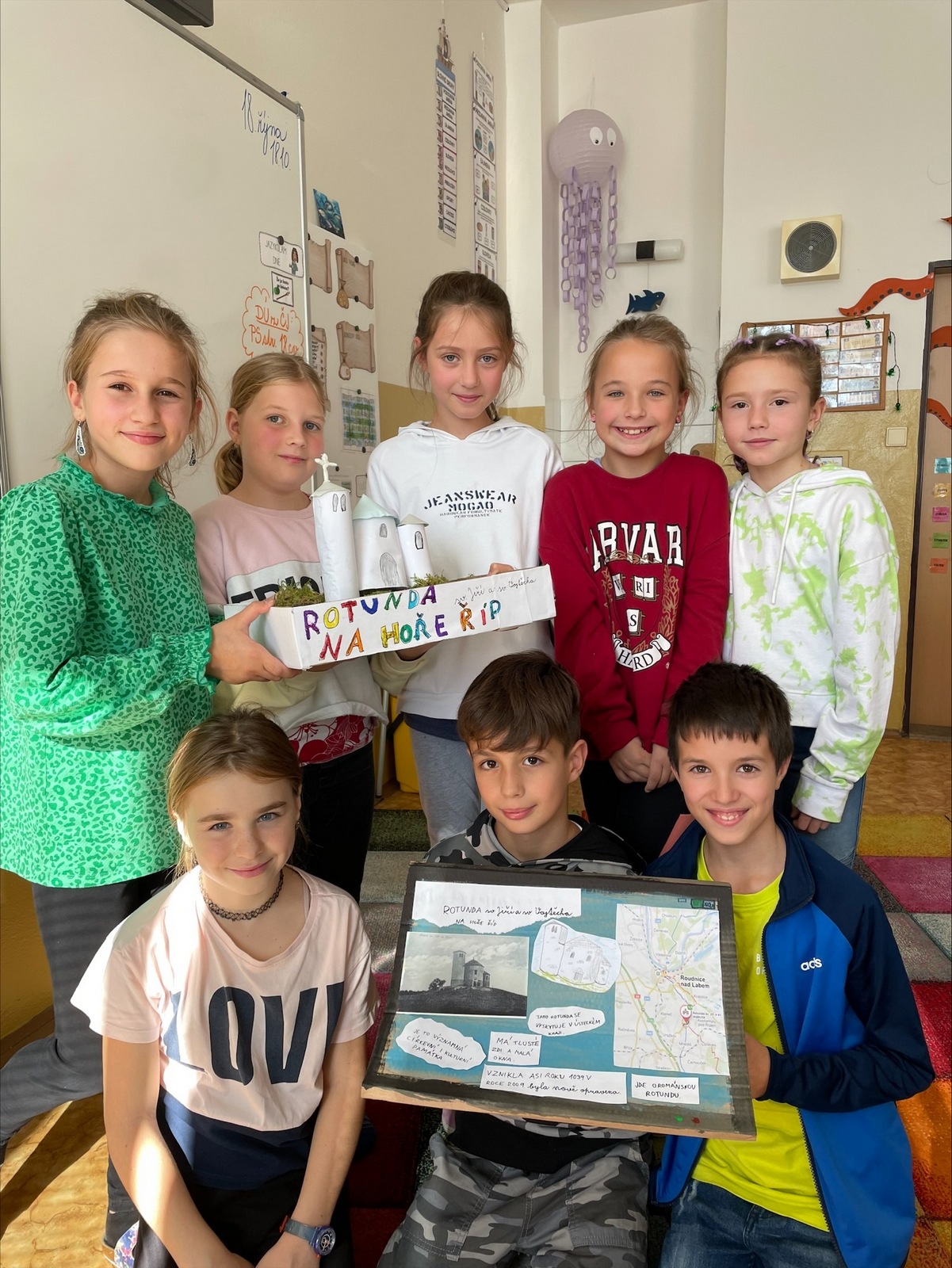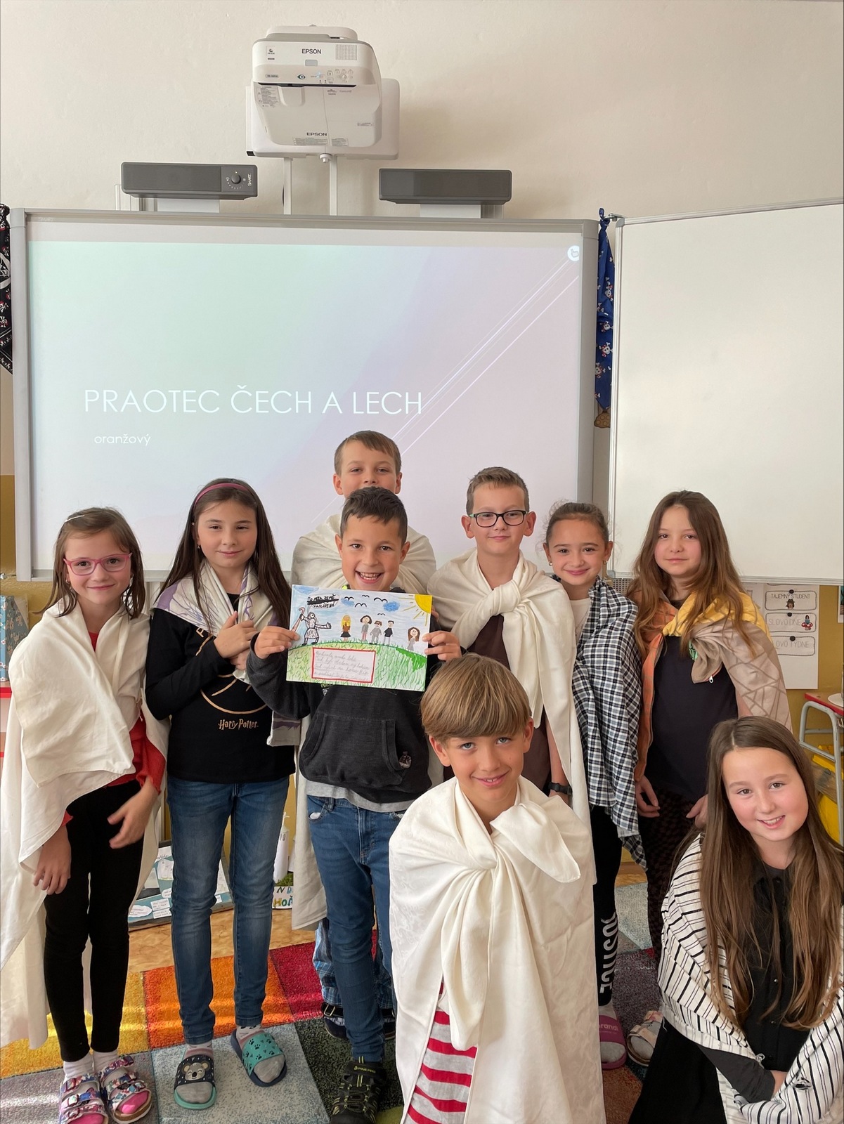 Knihu Aloise Jiráska: Staré pověsti české zná jistě každý. I žáci 4.B se s touto knihou seznámili. V hodinách dějepisu jsme si o pověstech povyprávěli, a tak nás nadchli, že jsme se o nich chtěli dozvědět více! Žáci se rozdělili do tří skupinek a následně si vylosovali téma a práci, na kterou se, po domluvě ve skupince, museli sami připravit. První skupinka měla za úkol zhotovit model hory Říp, druhá měla vyrobit model rotundy, která se na hoře Říp nachází a poslední skupinka sehrála divadlo příchodu praotce Čecha a Lecha do naší krásné země.
