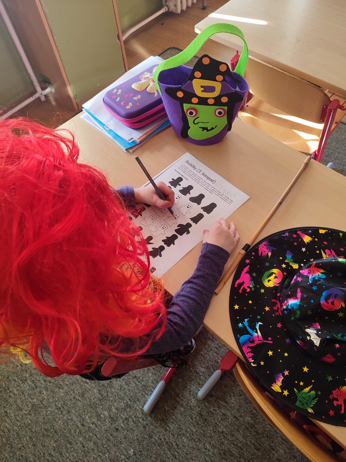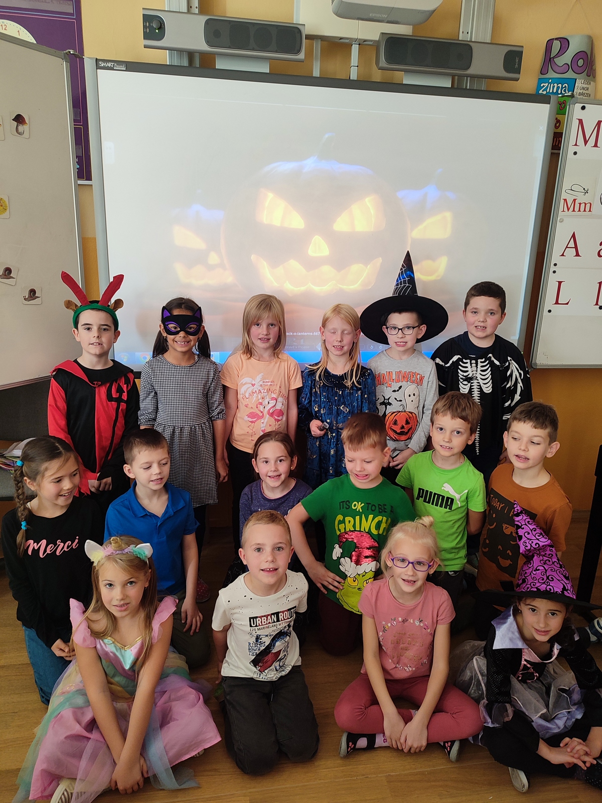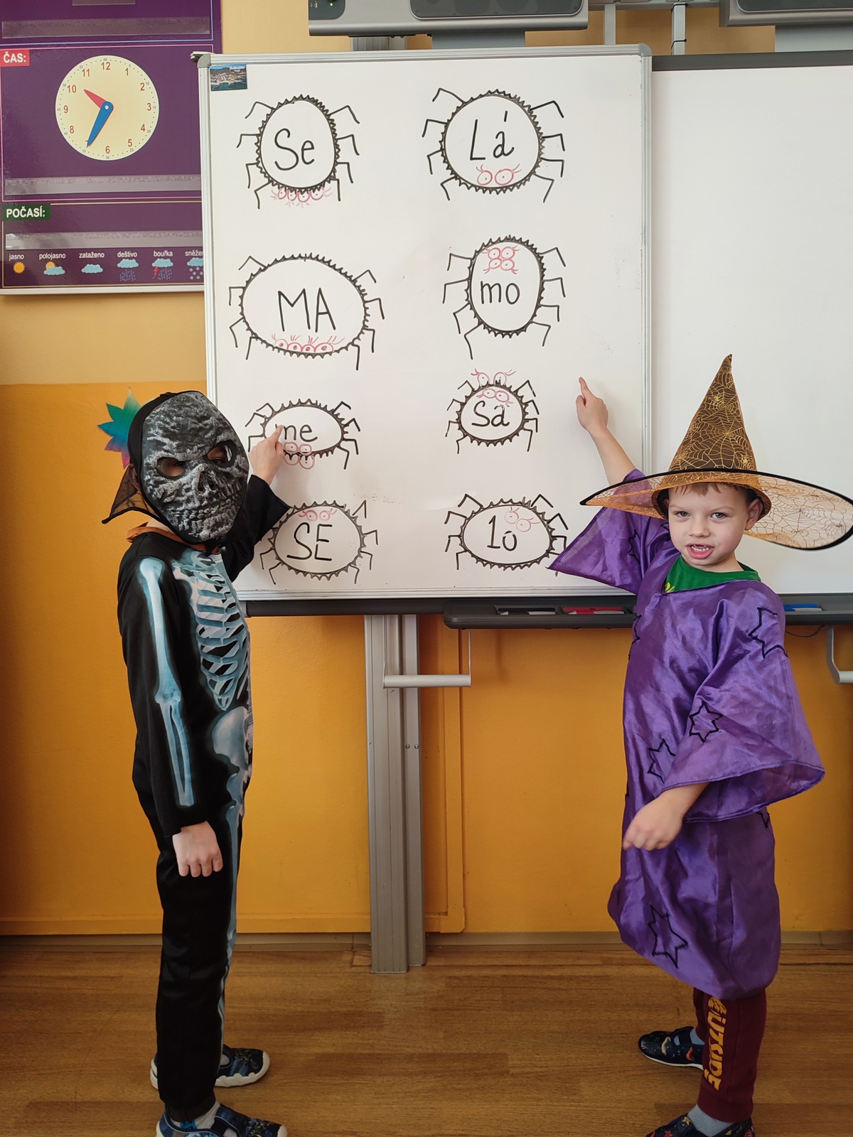 U nás první třídě jsme si celé dopoledne užívali nejen Halloweenu, strašidel a oslavy Dušiček, ale také podzimu celkově. V matematice jsme zopakovali psaní číslic s dýněmi, porovnávání čísel s duchy. V českém jazyce jsme se motivovali pohádkou „Jak to bylo na Dušičky“, slabiky jsme procvičili s pavouky a písmenka s dýněmi. Nakonec jsme vytvářeli podzimní strašidelný obrázek a vyrobili skládací duchy.
