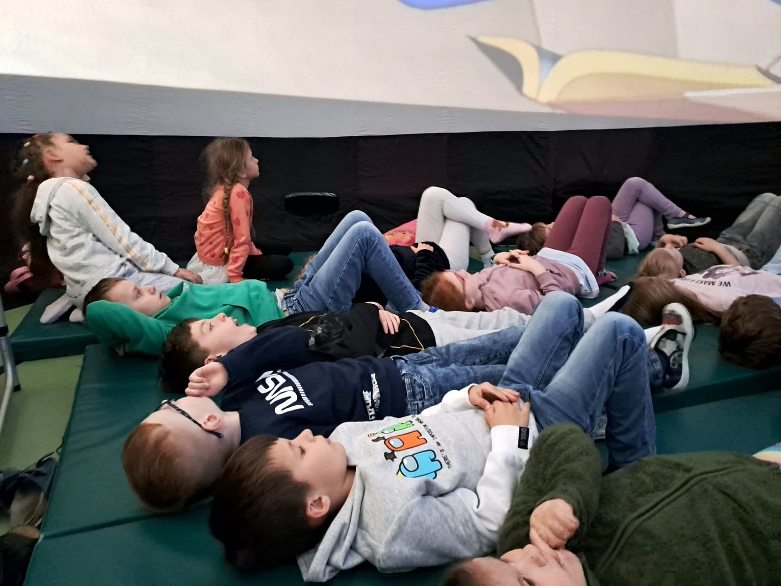 V úterý 2.5. se každý žák druhého ročníku a třídy 3.B, mohl stát kosmonautem. Díky návštěvě pojízdného sférického kina, tedy speciální nafukovací kopule, žáci mohli cestovat vesmírem a navštívit tak všechny planety sluneční soustavy. Animované zpracování pomohlo dětem lépe pochopit všechny důležité informace a zajímavosti. Byl to skutečně nevšední zážitek!