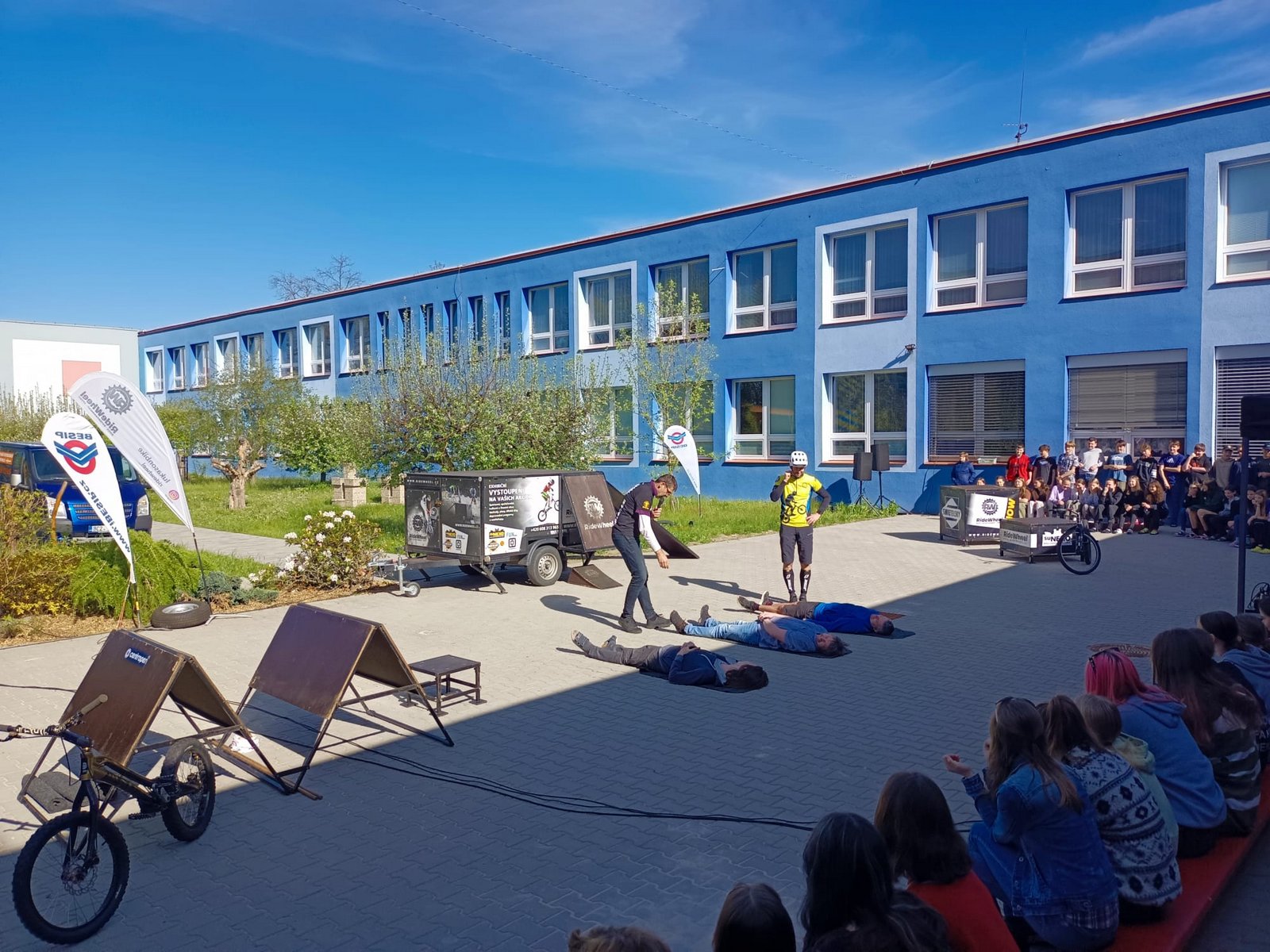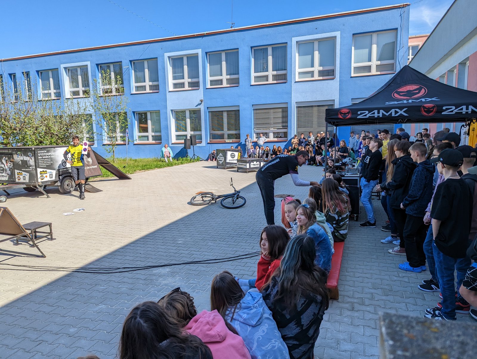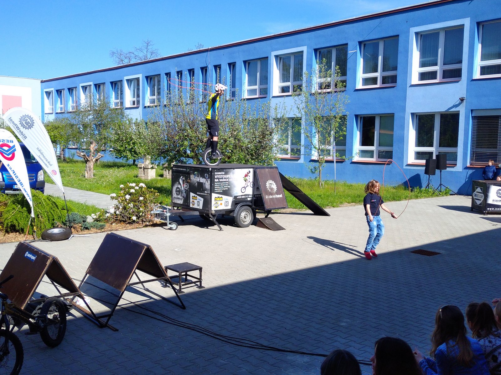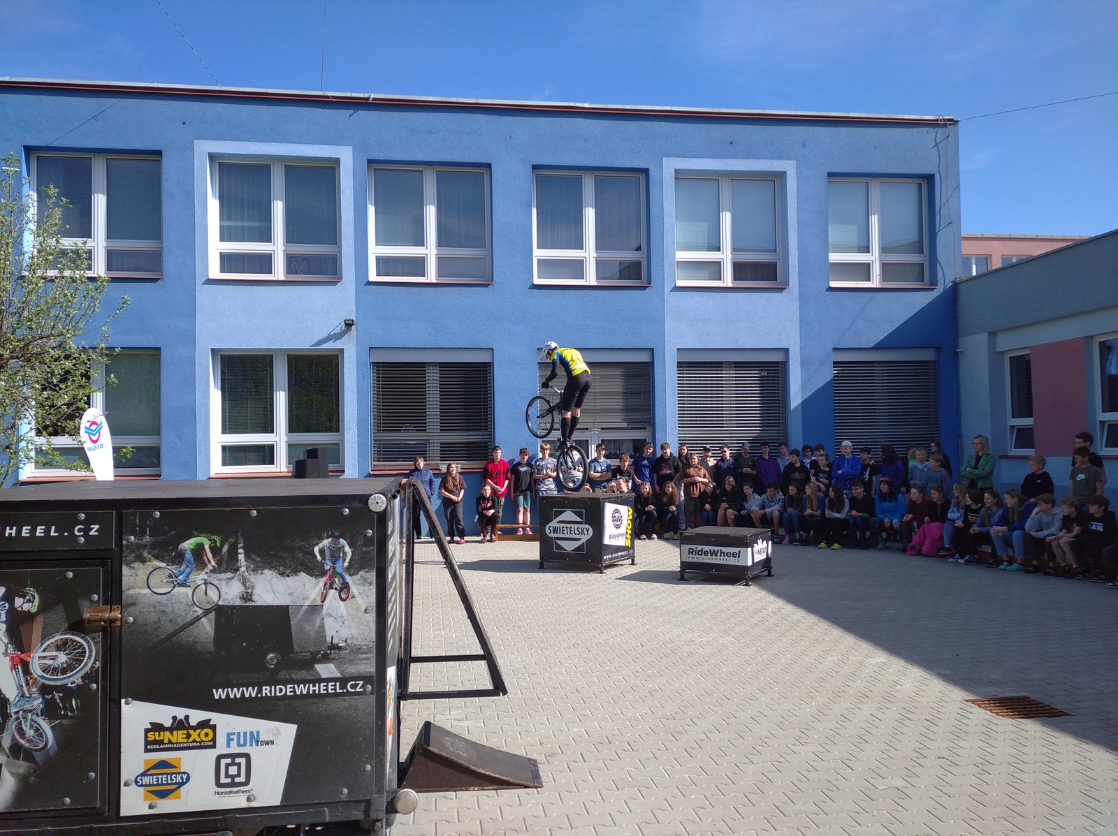 V pátek 5. května se u nás na škole ve spolupráci s BESIPEM konala biková adrenalinová moderovaná show pod názvem RideWheel. Kromě ukázky tohoto sportu byla dětem zmíněna i bezpečnost v silničním provozu. Na závěr akce se děti mohly vyfotit se samotným vystupujícím Lukášem Müllerem. Děti se na této akci bavily a odnesly si spoustu zážitků.
