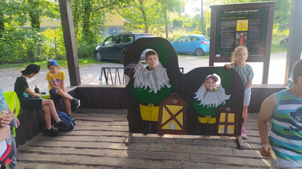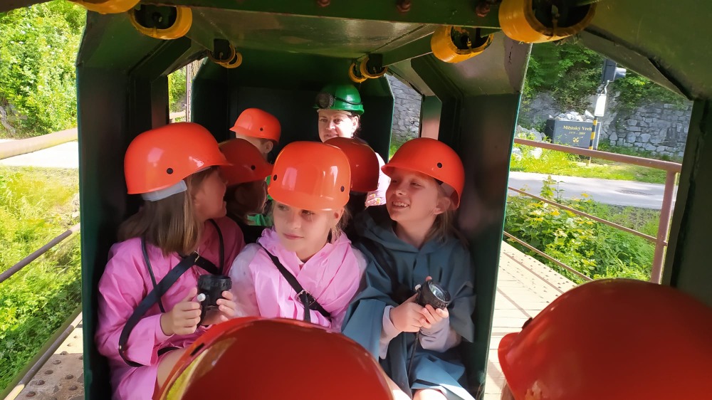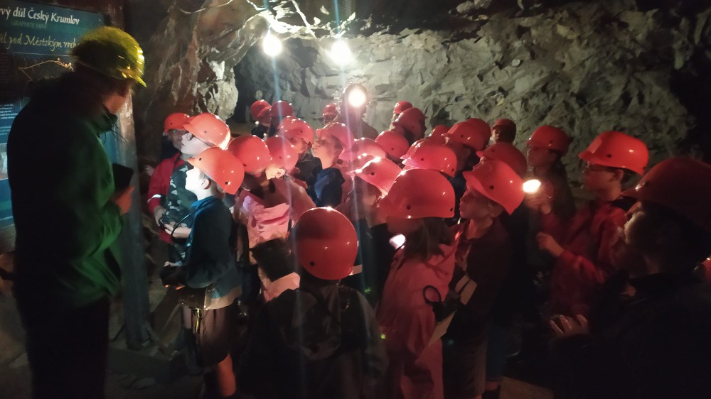 Výlet do Českého Krumlova není jen prohlídka hradu a zámku. Žáci 3. A a 3. B dne 22. 6. navštívili grafitový důl. Žáci vybaveni důlními lampami a přilbami si prošli staré důlní šachty.
