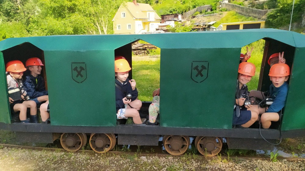 Během prohlídky si na vlastní kůži vyzkoušeli, v jakých podmínkách horníci pracovali a jaké stroje při práci používali. Dozvěděli se, jakým způsobem těžba probíhala, jak se grafit zpracovával a co se z něho vyrábělo. Do podzemí je zavezl trochu strašidelně vypadající důlní vlak, kterým dříve jezdili dělníci na šichtu.