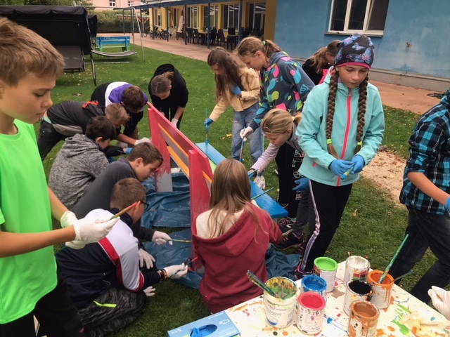 Absolvovali zde prohlídku centra a podívali se, jak se učí místní žáci. Nejvíce děti zaujala zahrada s hřištěm, kde jsme společně namalovali a vyzdobili jednu z laviček. Všem se moc líbila místní zvířátka, především ovečky, ale také legrační morče. Děti si také vyzkoušely jízdu na speciálních tříkolkách a zjistily, že to vůbec není jednoduché!