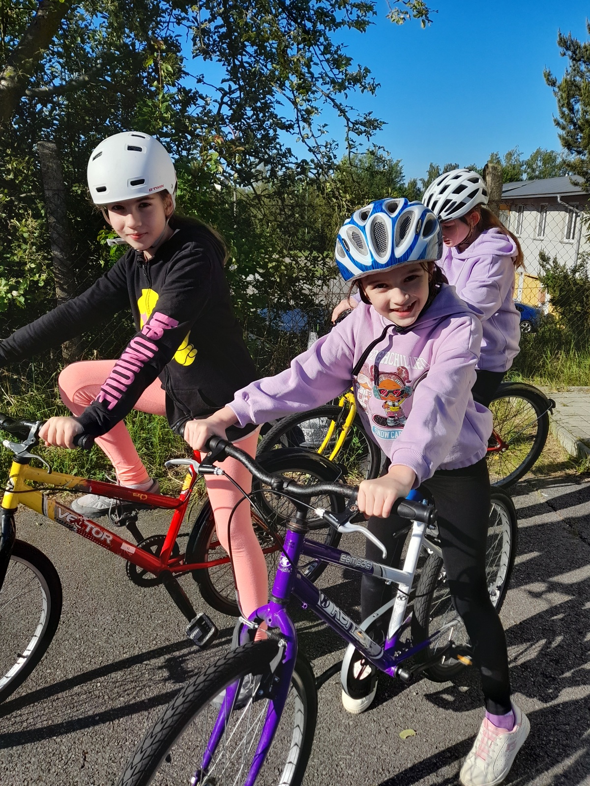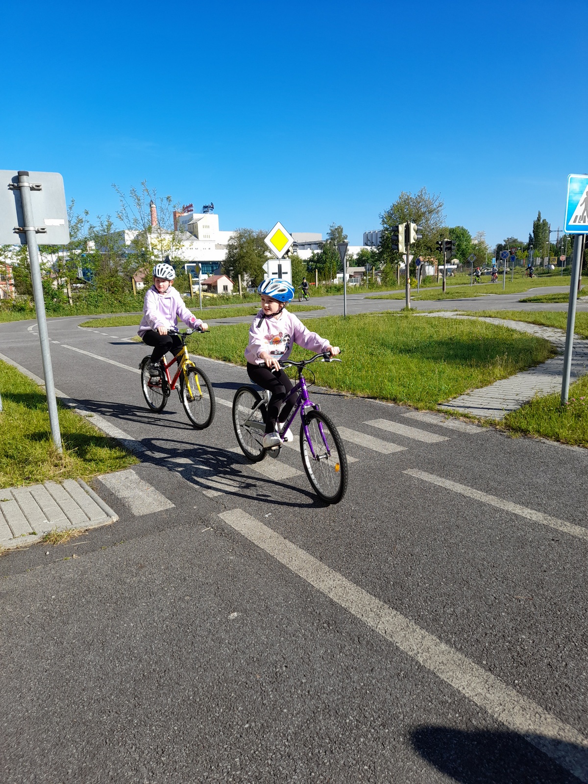 a předpisy. Druhá skupinka si vše prakticky ověřila na jízdních kolech. Všechny děti se prostřídaly a počasí nám všem přálo.