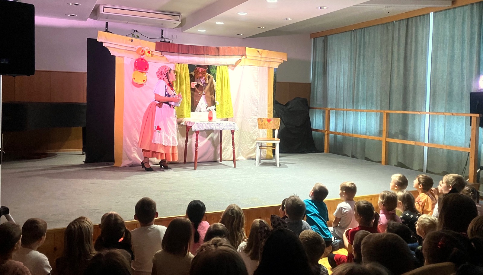 V pátek 25. října navštívilo družinu českobudějovické divadélko KOS. Divadlo tvoří dva herci, kteří dokážou během představení ztvárnit několik postav. Zahráli nám pohádku, která se jmenovala „O chytré ženě Blaženě“. Do pohádkového děje se zapojily i děti. Divadelní představení se všem moc líbilo.