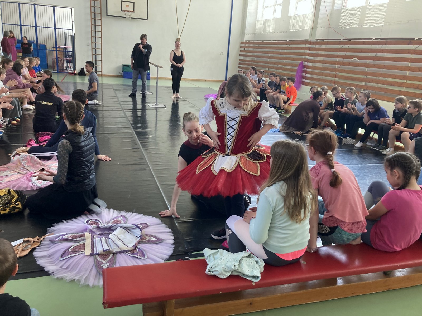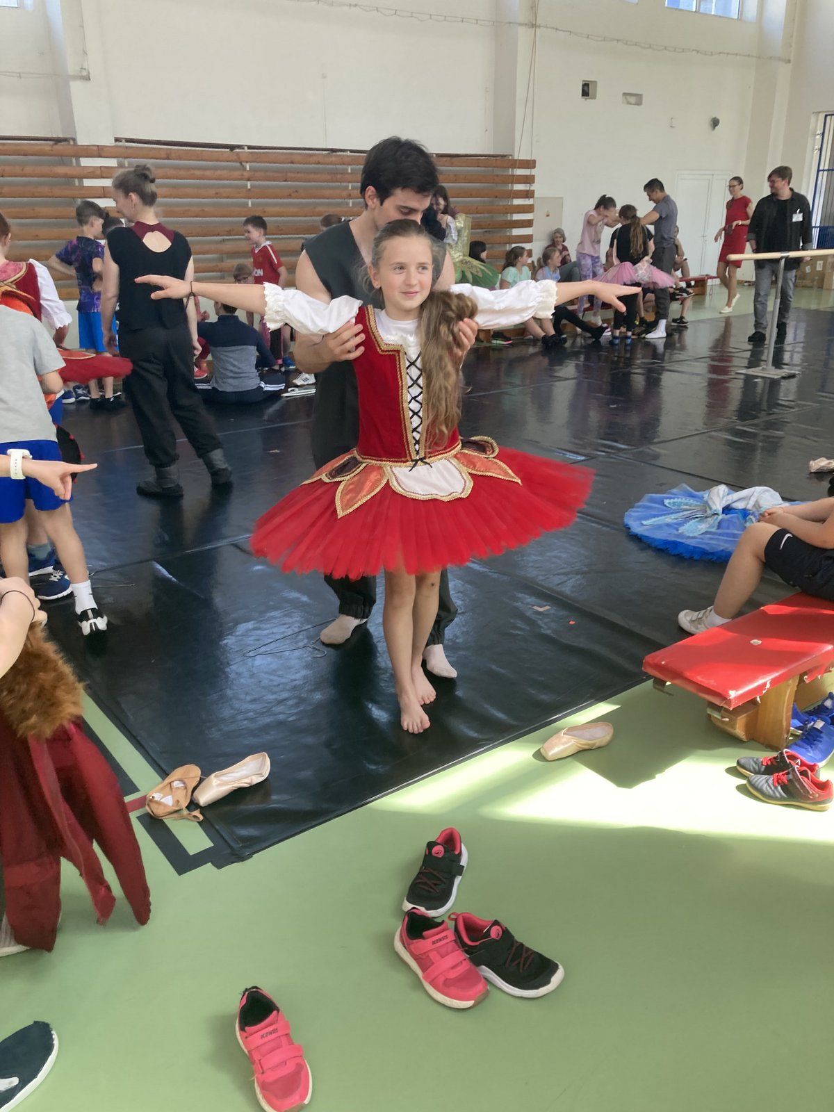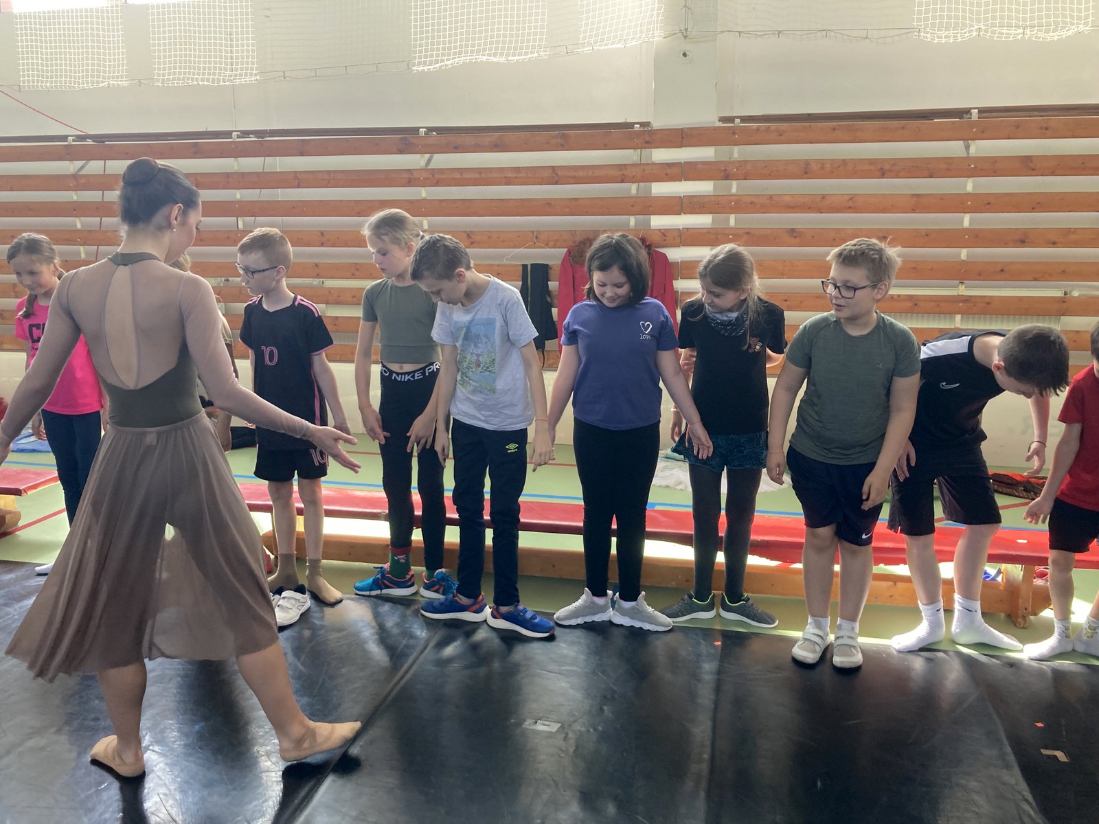 Některé baletní i taneční pozice si žáci společně se svým baletním instruktorem mohli vyzkoušet. Poznali toto náročné povolání, jeho krásu a uvědomili si, že i v 21. století má balet své místo v divadle. Někteří si procvičili i konverzaci v anglickém jazyce, protože baletní soubor je plný hostujících cizinců, například z Itálie, Japonska, Kanady, Kolumbie nebo Rumunska. Závěrem nacvičili všichni žáci společně se souborem krátkou taneční sestavu. Všichni jsme i to moc užili.
