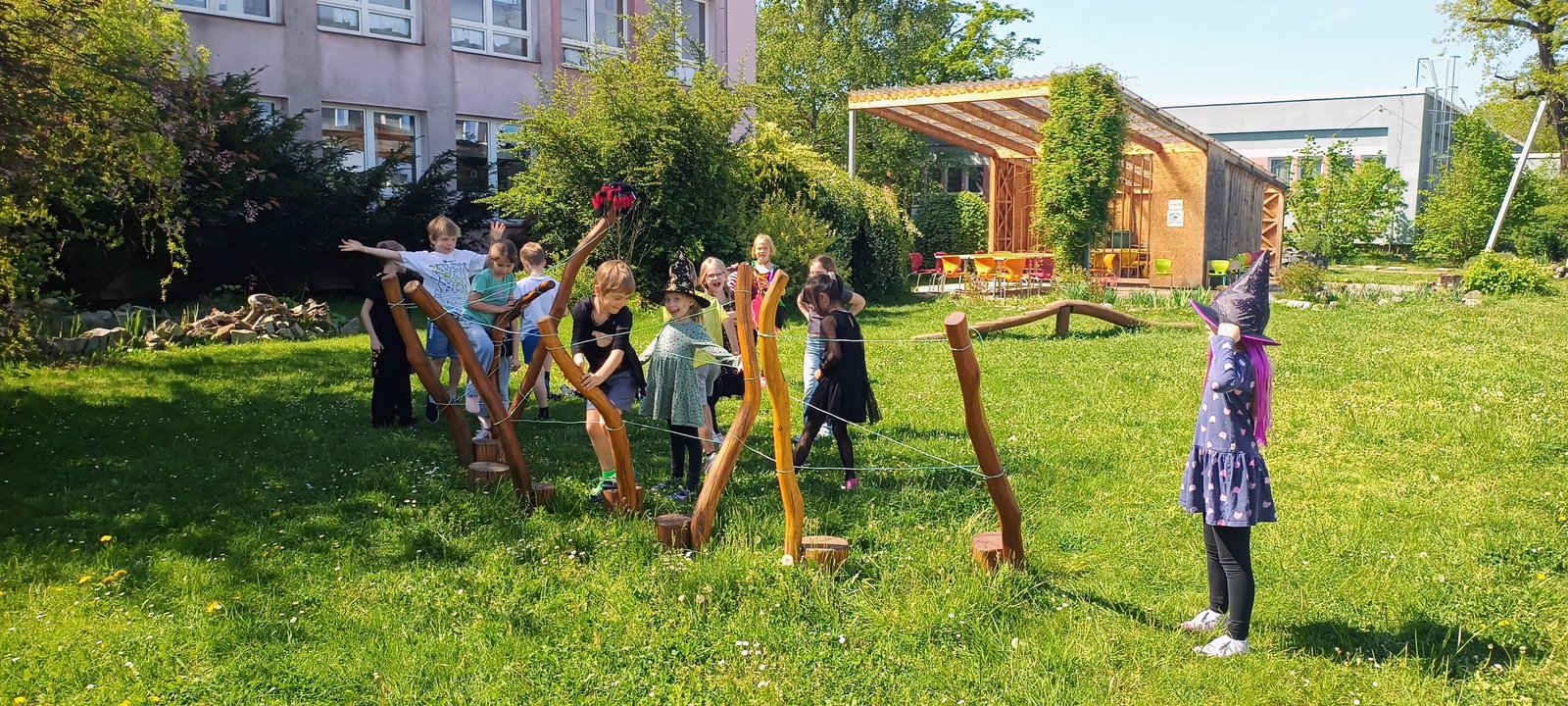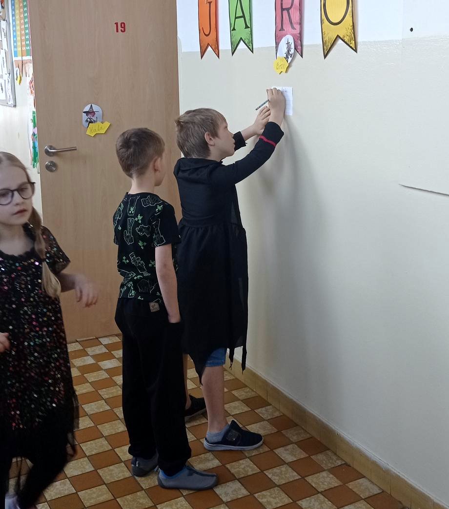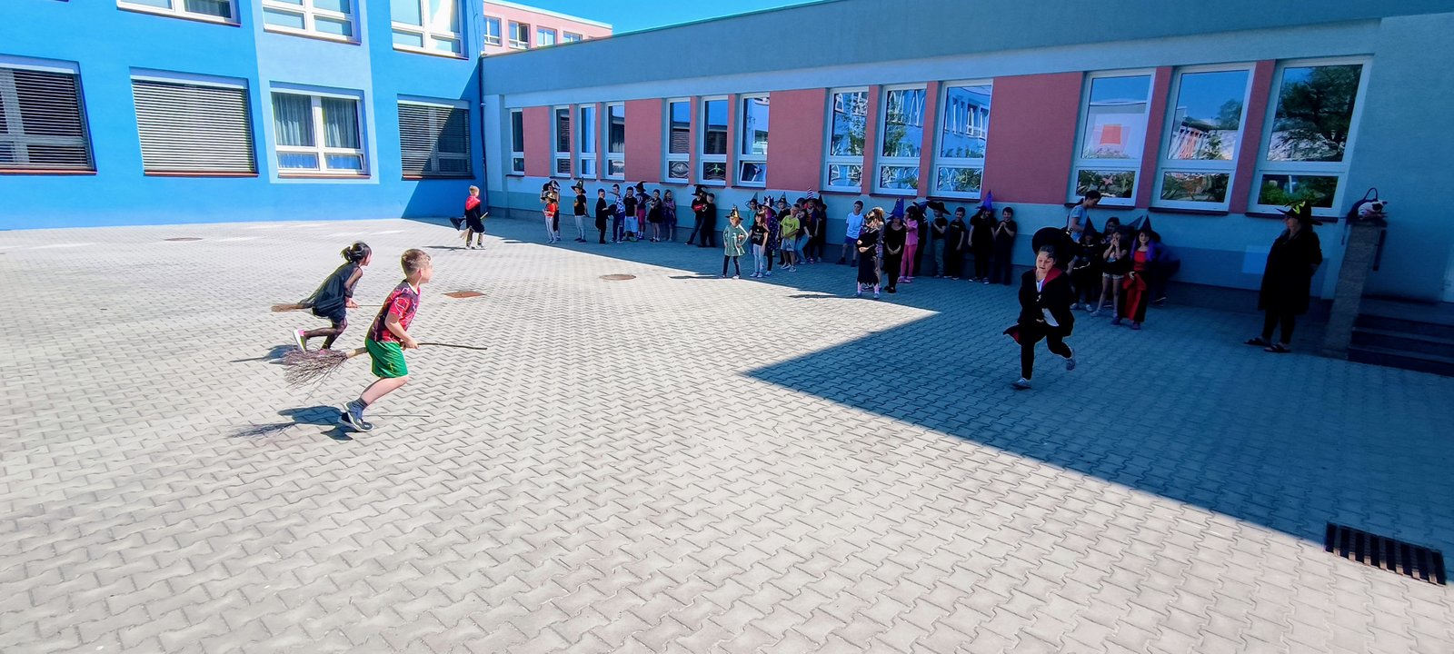 Na školní zahradě se proletěli na koštěti, zkusili si projít pavučinovou stezkou, hledali ve vajíčku schované pukavce a dobrovolníci mohli vylovit z bedny něco strašidelného… Za odměnu dostali drobnou sladkost a průkaz.