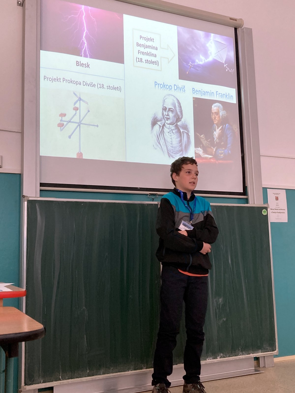 Na této konferenci také vystoupil žák Filip S. ze 4. ročníku naší základní školy. Pro diváky v sále si připravil poutavé povídání o elektřině a způsobech její výroby. Přednáška se mu skvěle povedla. Přejeme mu hodně štěstí a příjemných zážitků i do dalších akcí, kterých se zúčastní.