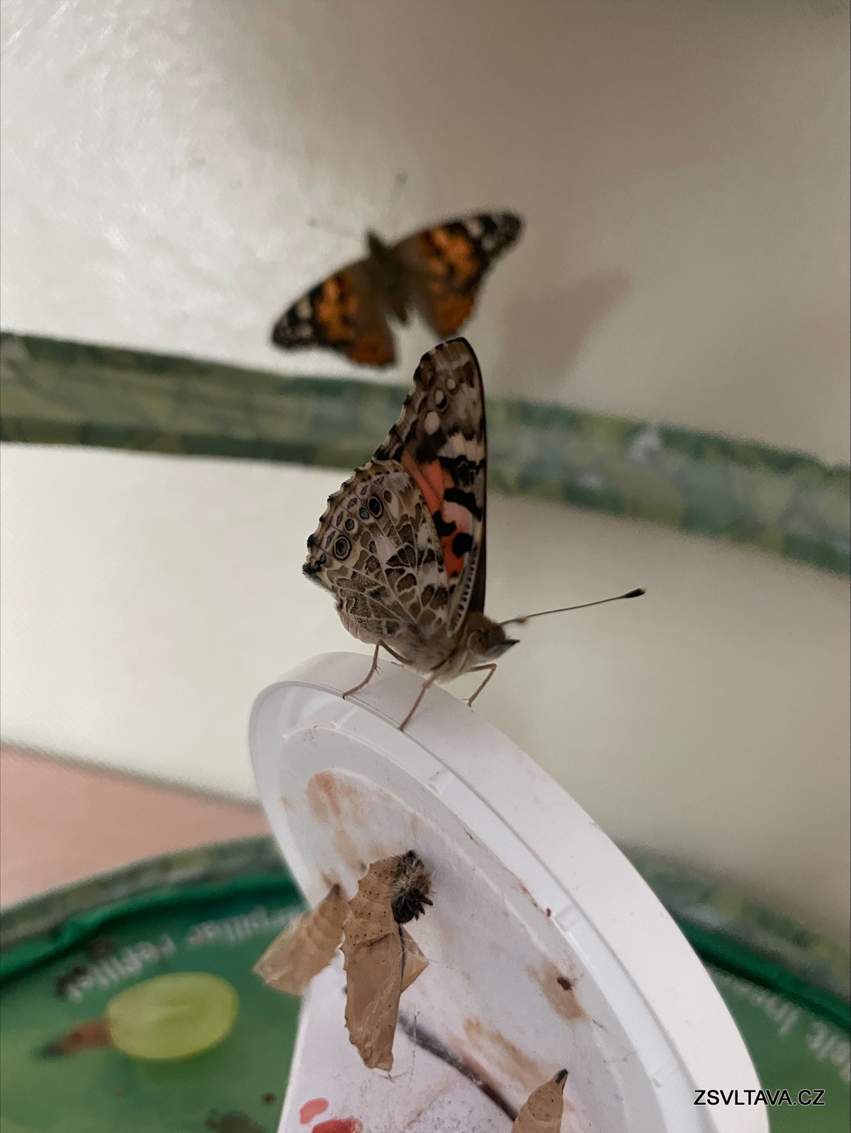 Začali jsme pozorováním housenek – byli jsme překvapeni, jak rychle rostou! Když se housenky zakuklily a následně se z nich vylíhlo 5 krásných motýlů, byli jsme nadšení. Pár následujících dní jsme motýly ještě pozorovali v síťce a viděli jsme například, jak sosákem sají nektar z ovoce. Bylo úžasné vidět celý tento proces zblízka.