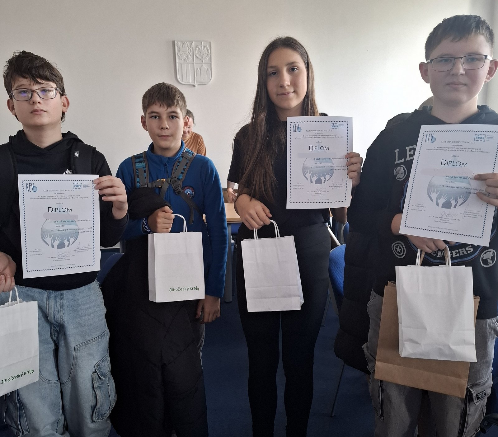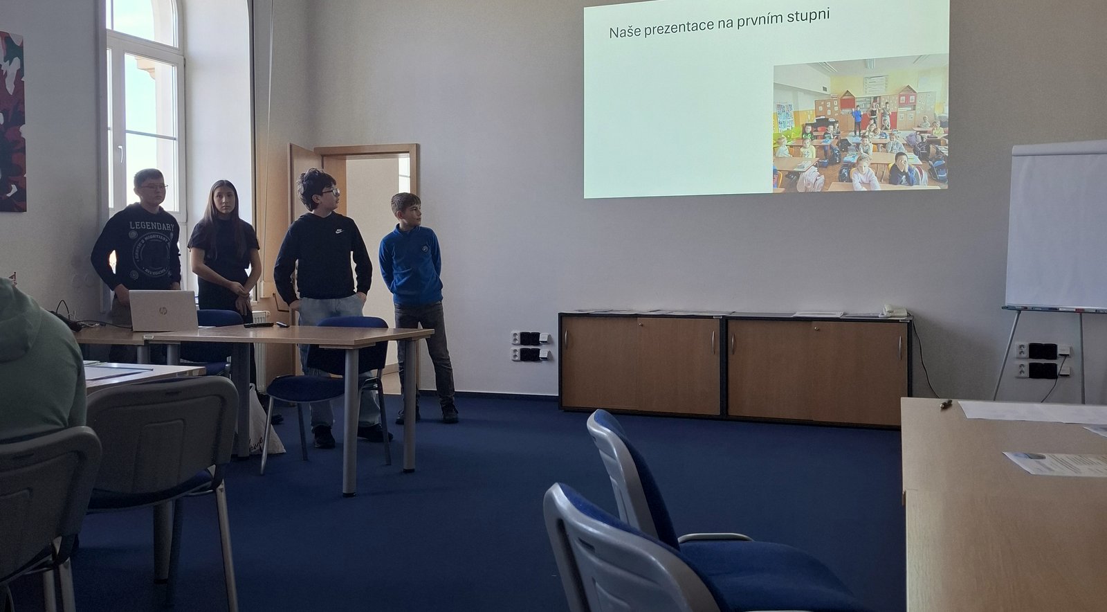 V listopadu jsme se s vybranými žáky ekotýmu zúčastnili prezentační soutěže Klubu ekologické výchovy, která se koná každoročně na Krajském úřadě v rámci žákovské konference KEV. Tento rok naši žáci dosáhli velkého úspěchu a umístili se na 2. místě v kategorii základních škol. Zmiňovanými žáky se stali Radek Kudl a Ondřej Kindl, kteří prezentovali svou práci sběru nebezpečného odpadu, a to konkrétně injekčních stříkaček v okolí školy a kteří i pořádají na 1. stupni informační kampaň a seznamují mladší žáky s touto problematikou a nebezpečím, které jim hrozí například na dětských hřištích. Moc děkujeme a gratulujeme.