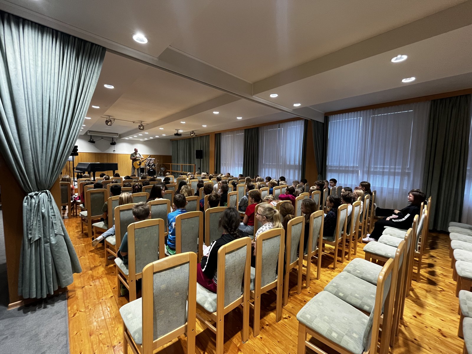 V listopadu se žáci 1. stupně zúčastnili zajímavé hudební přednášky pořádané agenturou Forrest Gump. Během programu si s chutí zazpívali, zasoutěžili a aktivně se zapojili do všech připravených aktivit. Atmosféra byla veselá a žáky opravdu nadchla.