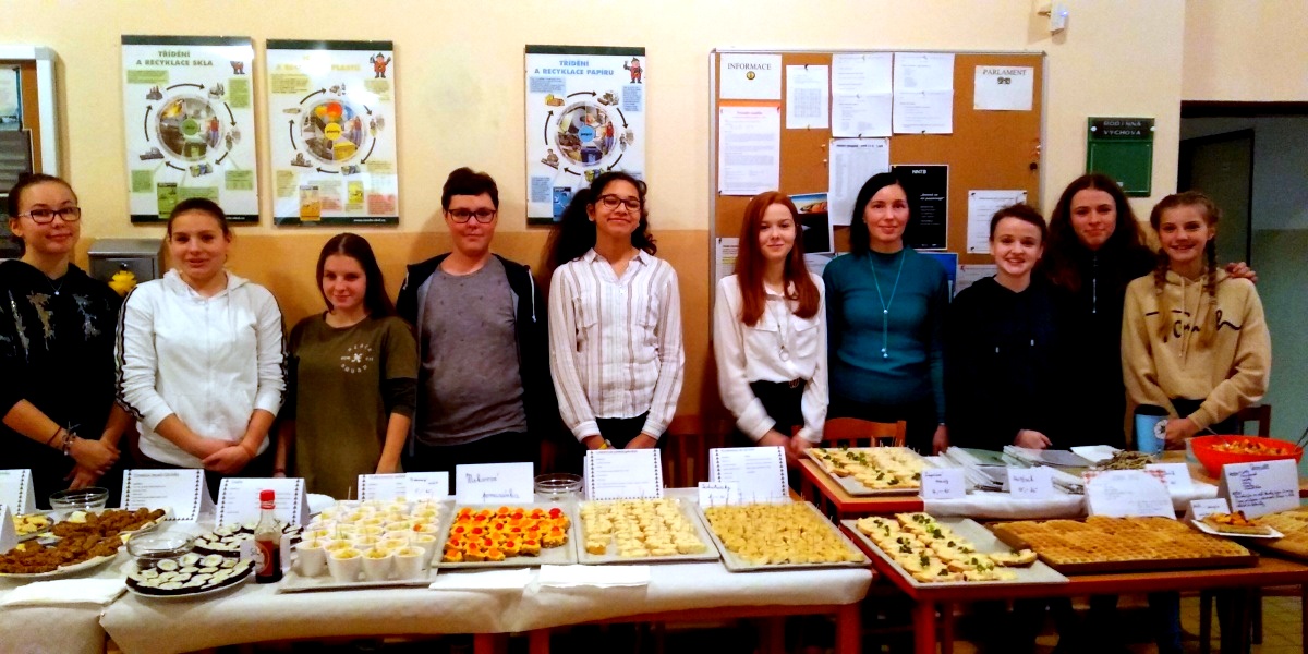 Žáci připravili praktické ukázky drobného pohoštění s využitím zeleniny, ovoce či biopotravin a dokázali, že příjemné posezení může proběhnout chutně a přitom zdravě. Kromě jiného se na stolech objevily vafle s ovocem, pomazánky, celozrnné sladkosti, sushi a další pamlsky.