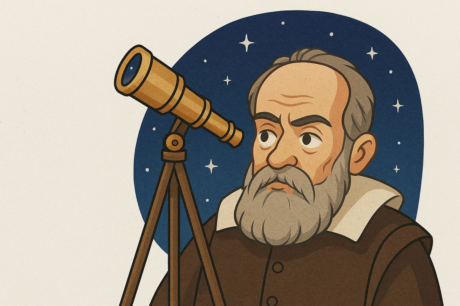 Galileo se narodil v roce 1564 ve městě Pisa v Itálii. Jeho otec byl hudebník a matematik, a možná právě od něj zdědil zvídavost a lásku k logice. Nejprve studoval medicínu, ale rychle zjistil, že ho víc než lidské tělo zajímá pohyb kyvadla a padajících předmětů. Už jako mladý student na univerzitě pozoroval lustr houpající se v katedrále a položil si otázku: „Proč se hýbe tak pravidelně?“ Tak začala jeho celoživotní cesta vědeckého zkoumání.
