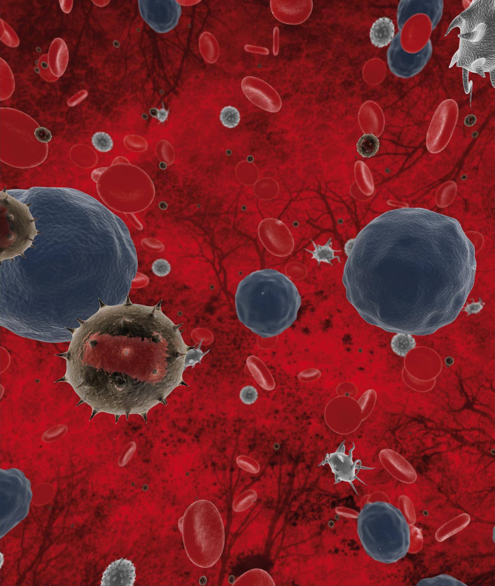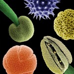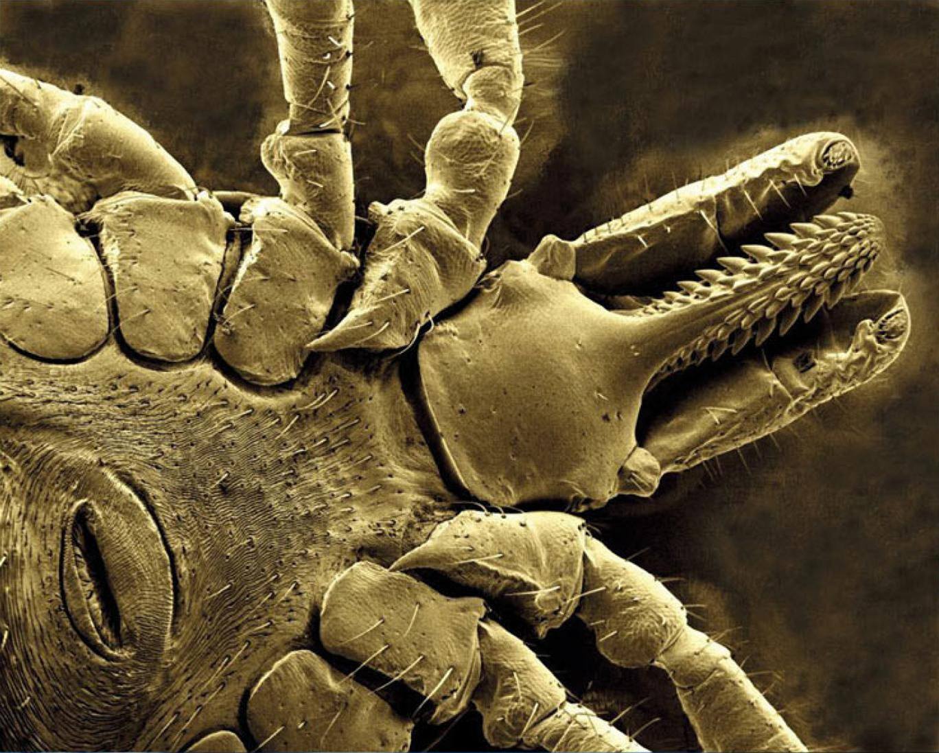 3. řádek: klíště, vir HIV v krvi a zrnka pylu