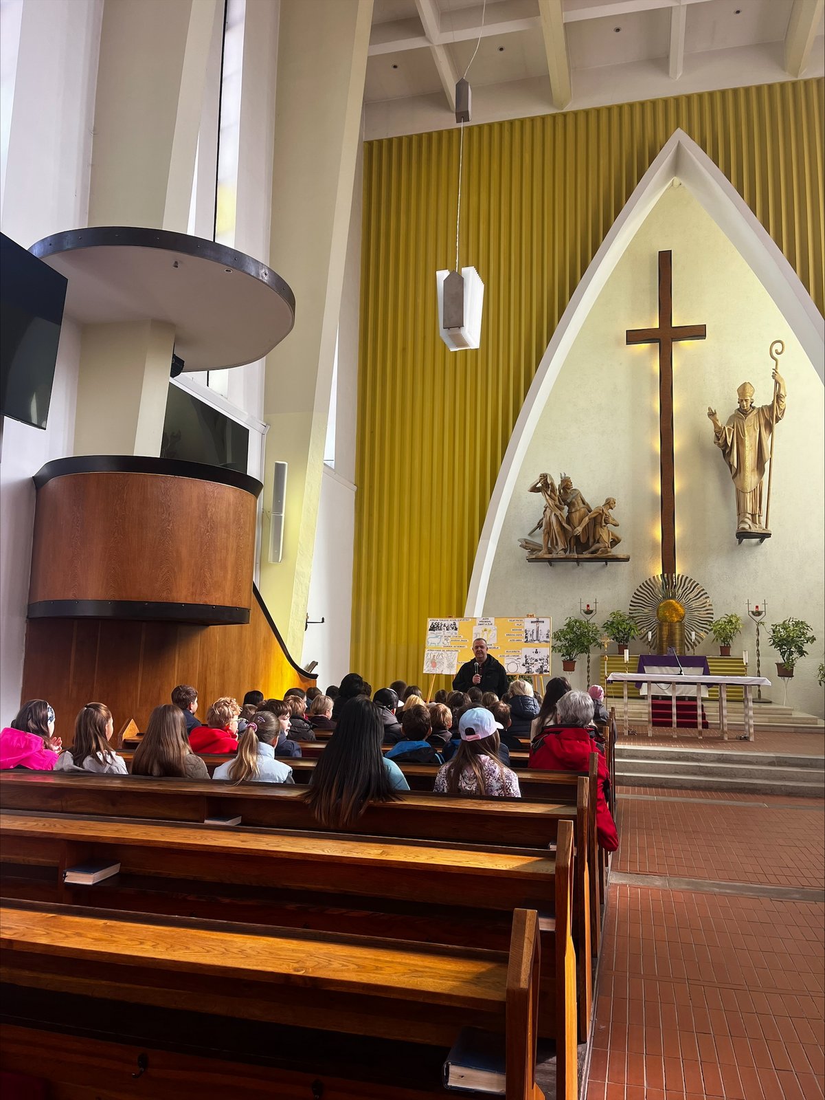 Ve středu 25. března navštívily třídy 4. B a 4. C kostel svatého Vojtěcha ve Čtyřech Dvorech, kde pro ně byl připraven zajímavý program s náboženskou tematikou Velikonoc.