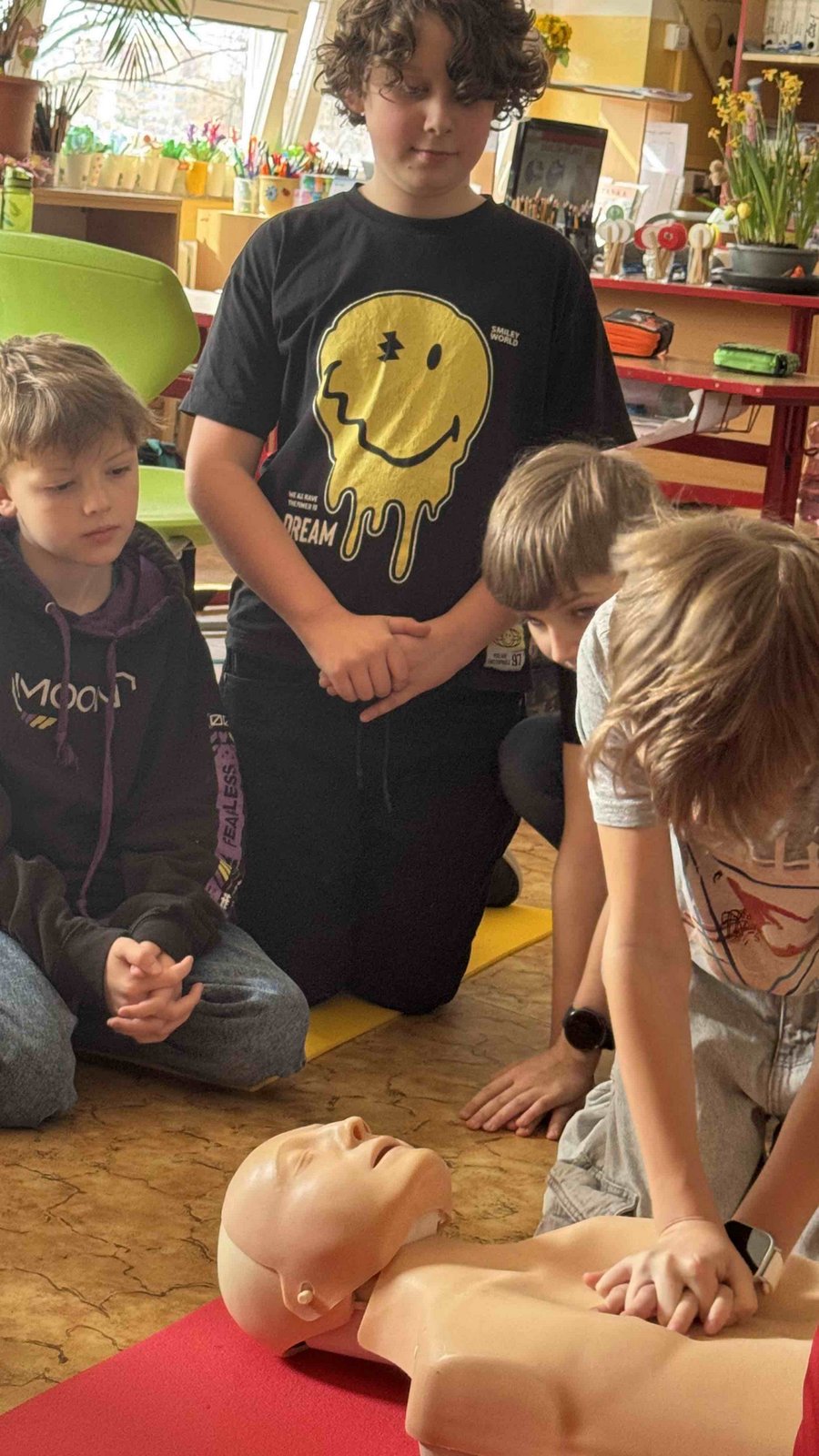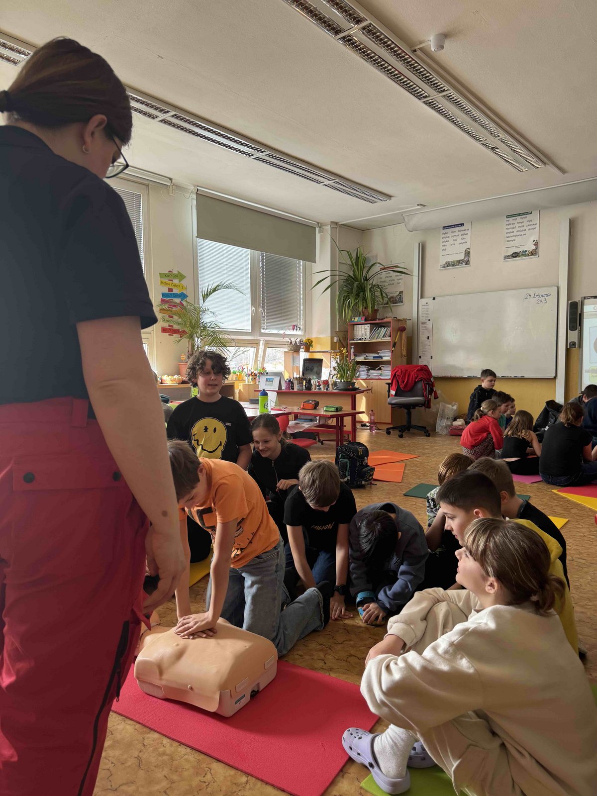 4.A v tomto týdnu vyzkoušela na vlastní kůži první pomoc, její nácvik a skupinové cvičení. Dobrovolnice z Červeného kříže připravily velice pěkný blok s názornými pomůckami a situacemi. Všem doporučujeme, nikdy nevíte, kdy tyto znalosti budete potřebovat. Štěstí přeje připraveným! což žáci 4.A teď rozhodně jsou...