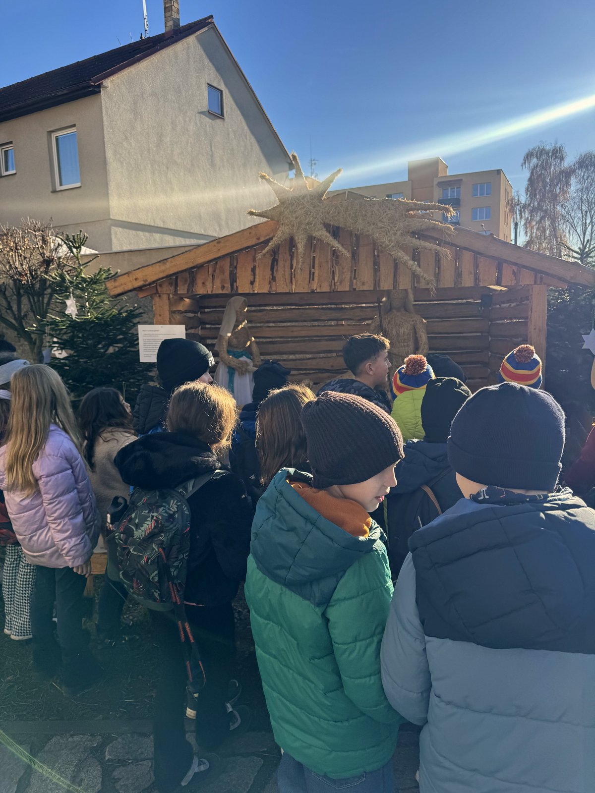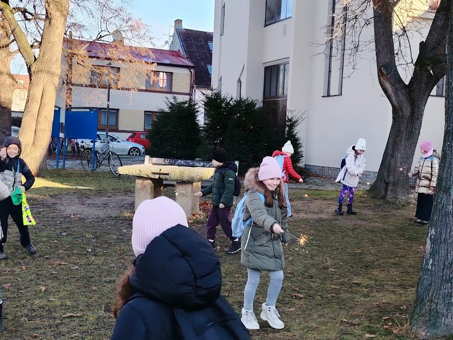 Žáci 3. ročníku využili nabídky předvánočního interaktivního programu v kostele sv. Vojtěcha a salesiánského centra. Děti měly možnost si prohlédnout prostory kostela a jeho vánoční výzdobu s dvěma betlémy. Jeden v kostele a druhý, slaměný, před kostelem. Zde si společně zazpívaly za doprovodu kytary a basy vánoční koledu. Program také zahrnoval krátký animovaný film o narození Ježíška a na šesti stanovištích se děti dozvídaly o významu vánočních symbolů a obyčejů. Na závěr si děti zapálily prskavky, dostaly teplý čaj a perníčky.