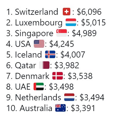Následující údaje nám ukazují průměrné mzdy ve vybraných zemích. Zapiš do tabulky, vyjádří v Kč a přidej sloupeček, kde bude procentuální srovnání s Českem.